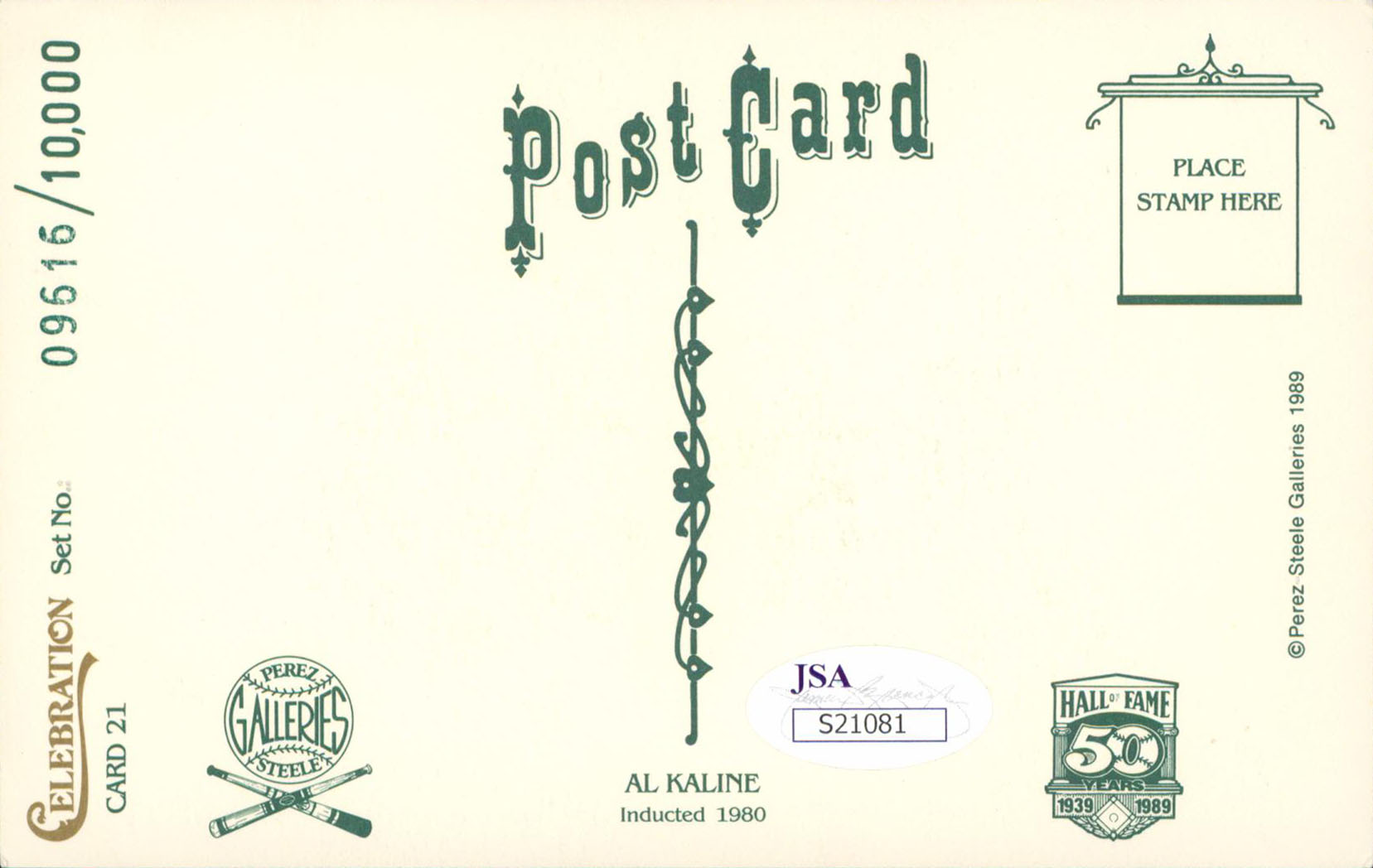 Tigers Al Kaline Authentic Signed 3.5x5.5 Perez Steele Postcard JSA #S21081