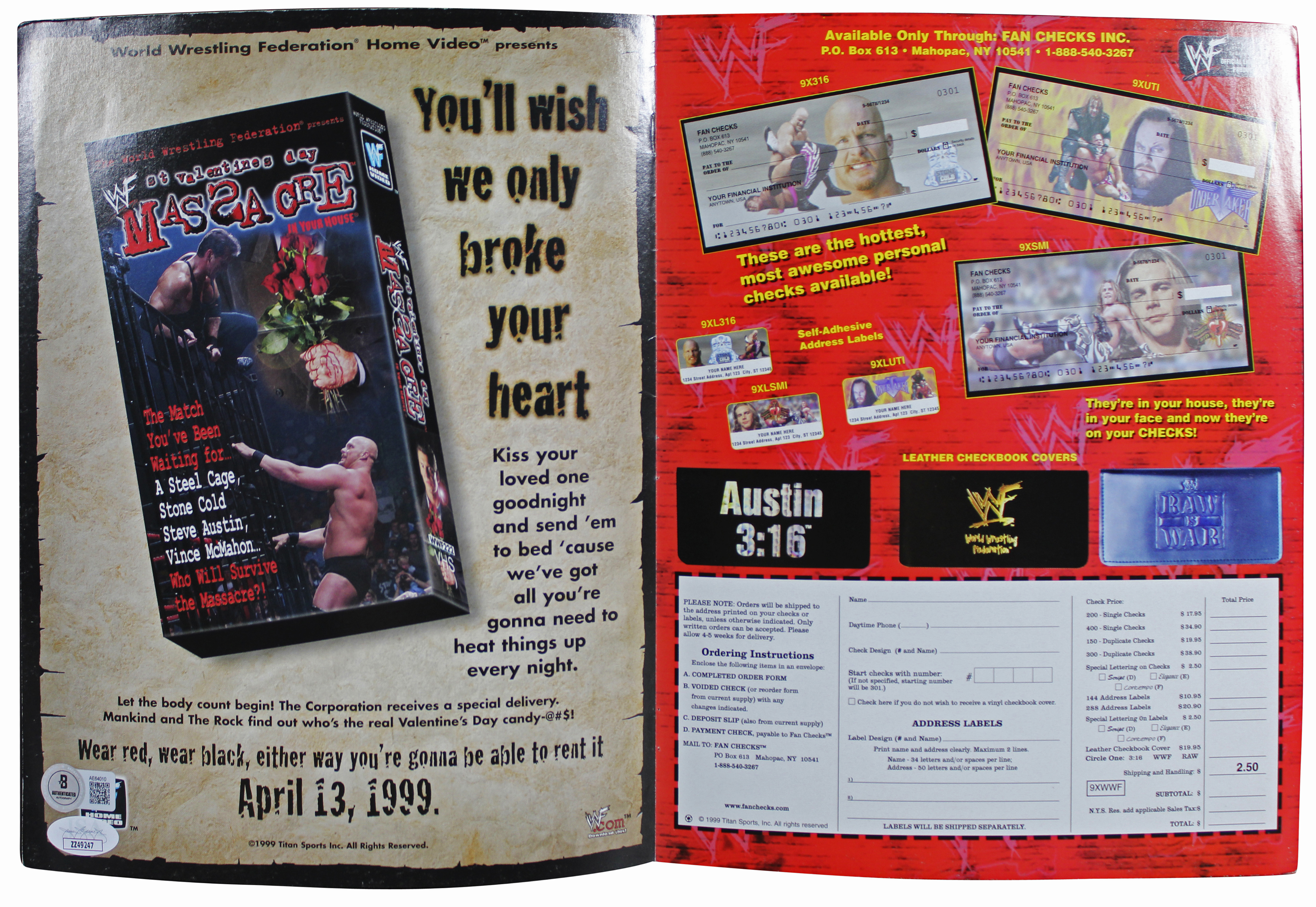 This Autographed World Wrestling Federation RAW May 1999 Magazine Cover has been Personally Signed by Vince McMahon & Steve Austin. This item is 100% Authentic to include a Certificate of Authenticity (COA) / hologram by Beckett Authentication Services. The authenticity can be verified on Beckett Authentication Services website.