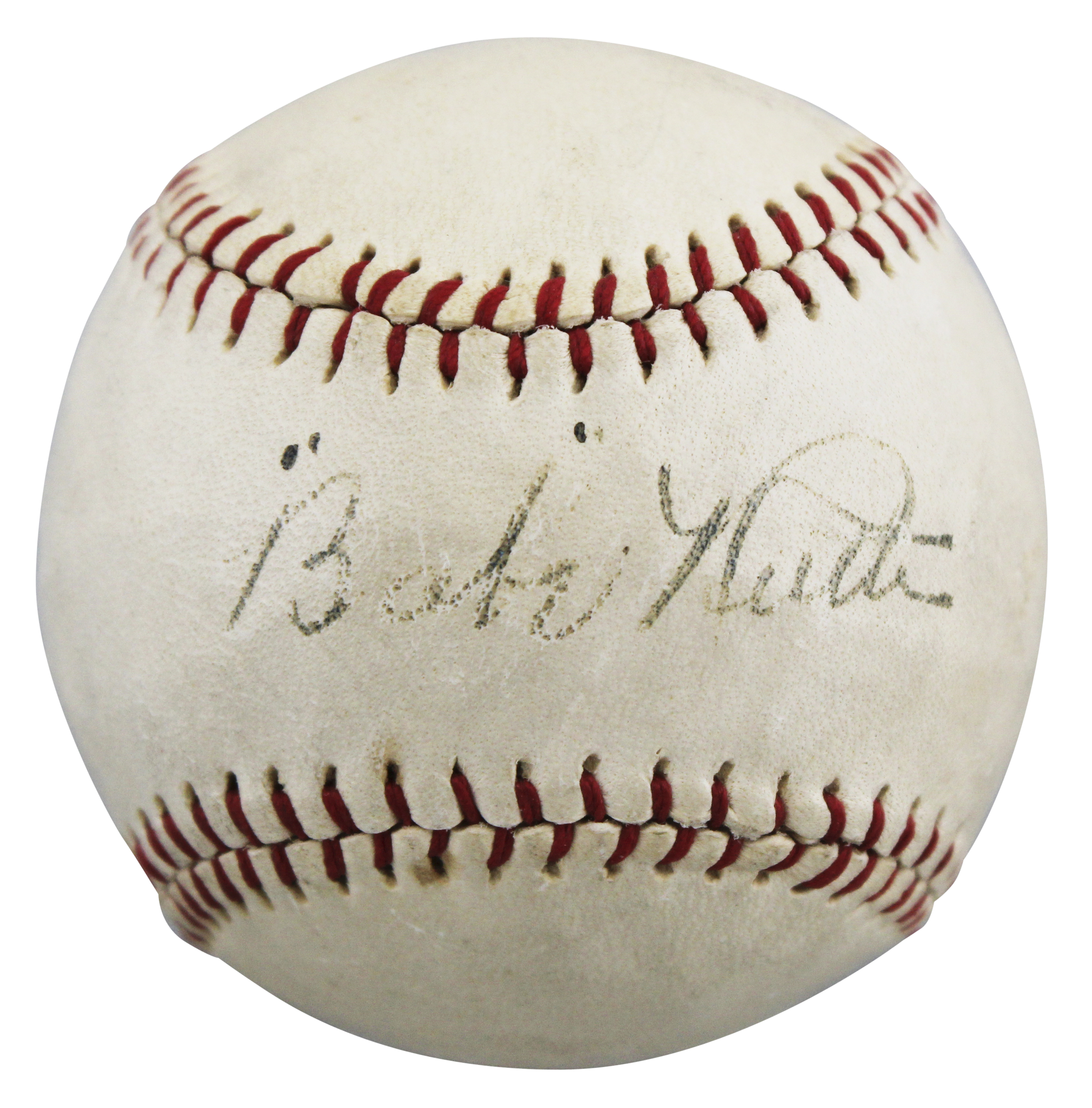 Babe Ruth Signed 1920s Spalding League Junior Baseball (PSA/DNA Certified) Offered here is an exceptional 1920s Spalding League Junior Baseball, personally signed by Babe Ruth of the New York Yankees. This stunning piece captures the essence of baseball���s golden era and one of the most legendary figures in sports history. The autograph has been authenticated by PSA/DNA and includes the matching numbered certification card and hologram. Verification of authenticity can be found directly on the Professional Sports Authenticator (PSA) website. Please note: this is a Junior-sized baseball, slightly smaller in circumference than an official Major League Baseball. A truly remarkable and display-worthy collectible for any serious baseball or Babe Ruth enthusiast.