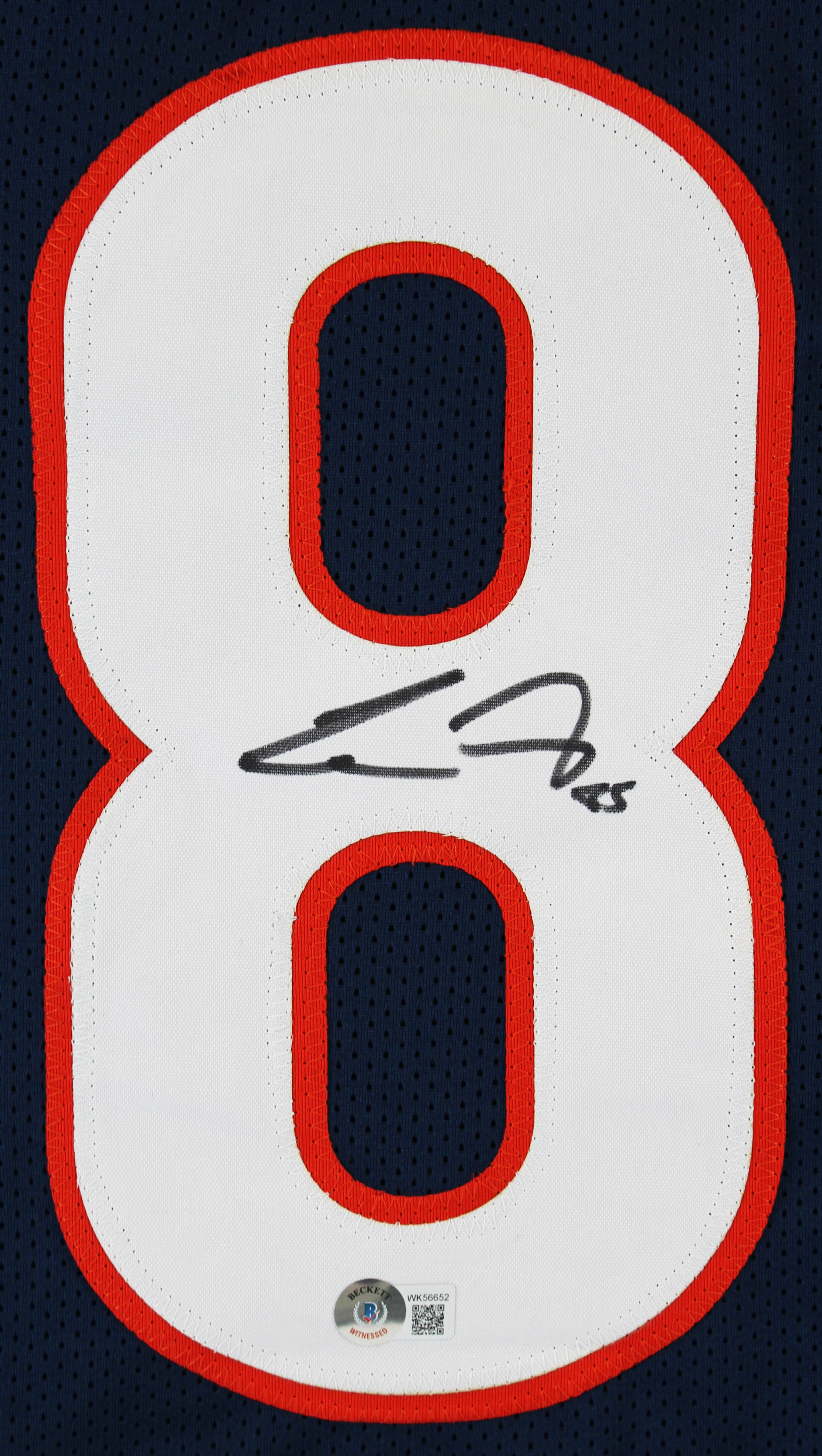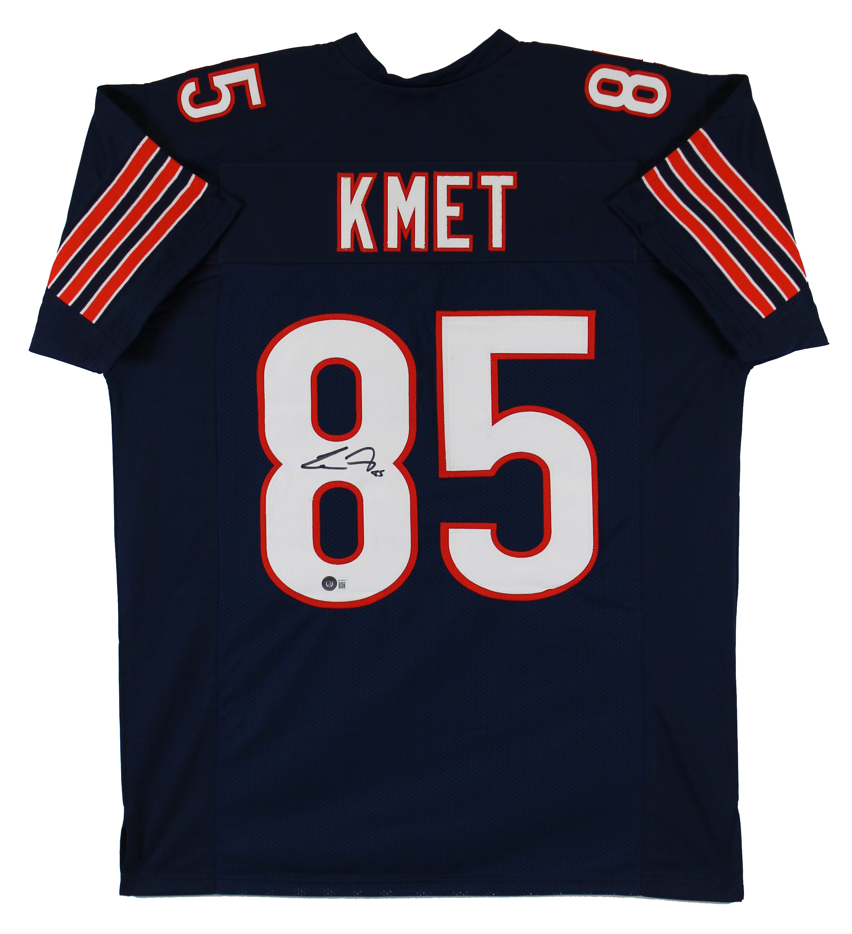 This Autographed Navy Blue Pro Style Jersey has been Personally Signed by Cole Kmet of the Chicago Bears. This item is 100% Authentic to include a hologram by Beckett Authentication Services. This item will come with the new Beckett Authentication hologram that has a scannable QR code rather than the traditional COA. If you would like to have a COA, you are welcome to reach out to Beckett for a printed certification once you receive your item. This is a BAS Witnessed Protection Program item which means a Beckett Authentication Service representative was present when this item was being signed. This is a stock item. We conducted an autograph signing with Cole Kmet and we have several of these available. The one you will receive will be of equal quality to the one pictured. This item can be verified through BAS Witnessed. This is a X-Large sized, non-branded, custom-stitched Jersey.