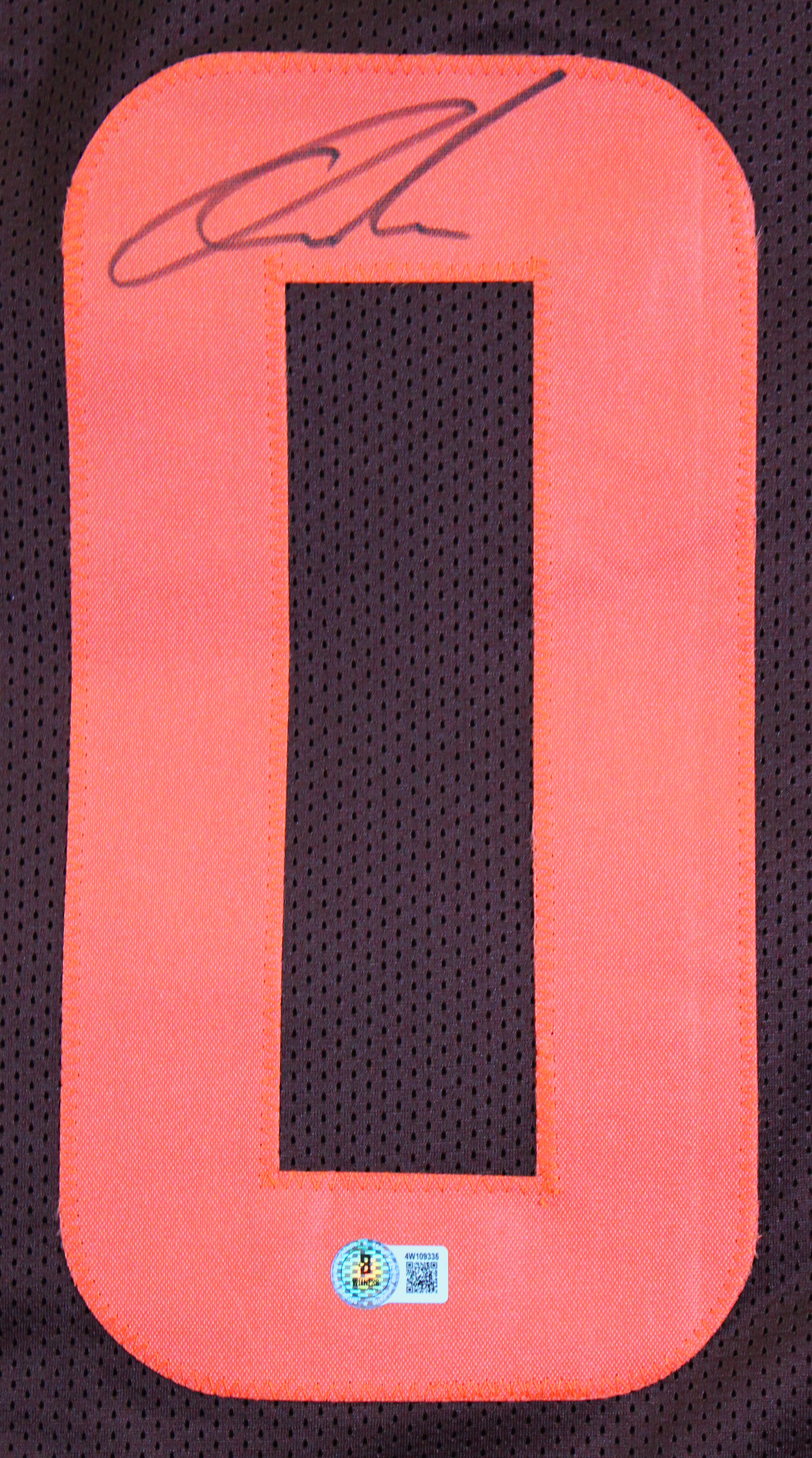 This Autographed Brown Color Rush Pro Style Jersey has been Personally Signed by Quinshon Judkins of the Cleveland Browns. This item is 100% Authentic to include a hologram by Beckett Authentication Services. This item will come with an affixed Beckett Authentication Services (BAS) authentication sticker, which includes a scannable QR code to verify authenticity. Please note that Beckett no longer provides serial-numbered COA cards, and the attached BAS sticker will serve as the complete authentication for this item. This is a BAS Witnessed Protection Program item which means a Beckett Authentication Service representative was present when this item was being signed. We conducted an autograph signing with Quinshon Judkins where multiples of the same item were signed. While the photographs are representative of this item, the size, placement and strength of the signature may vary. Each item is hand signed, therefore, each autograph is unique. This item can be verified through BAS Witnessed. This is a X-Large sized, non-branded, custom-stitched Jersey.