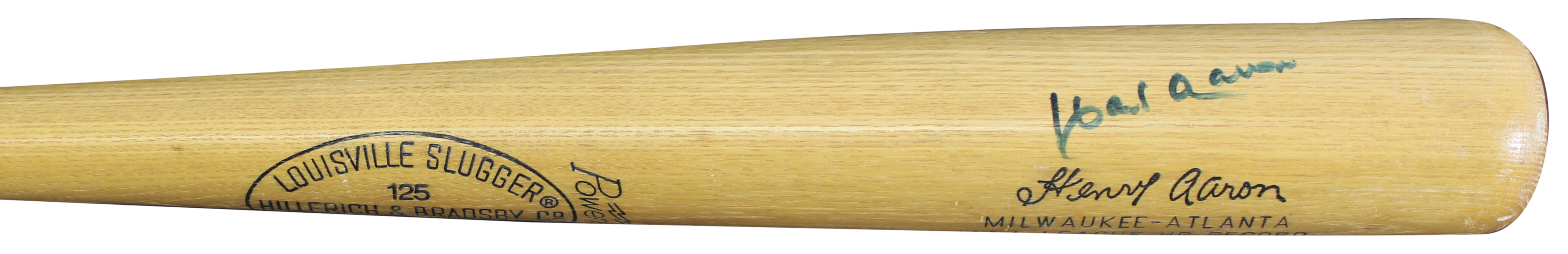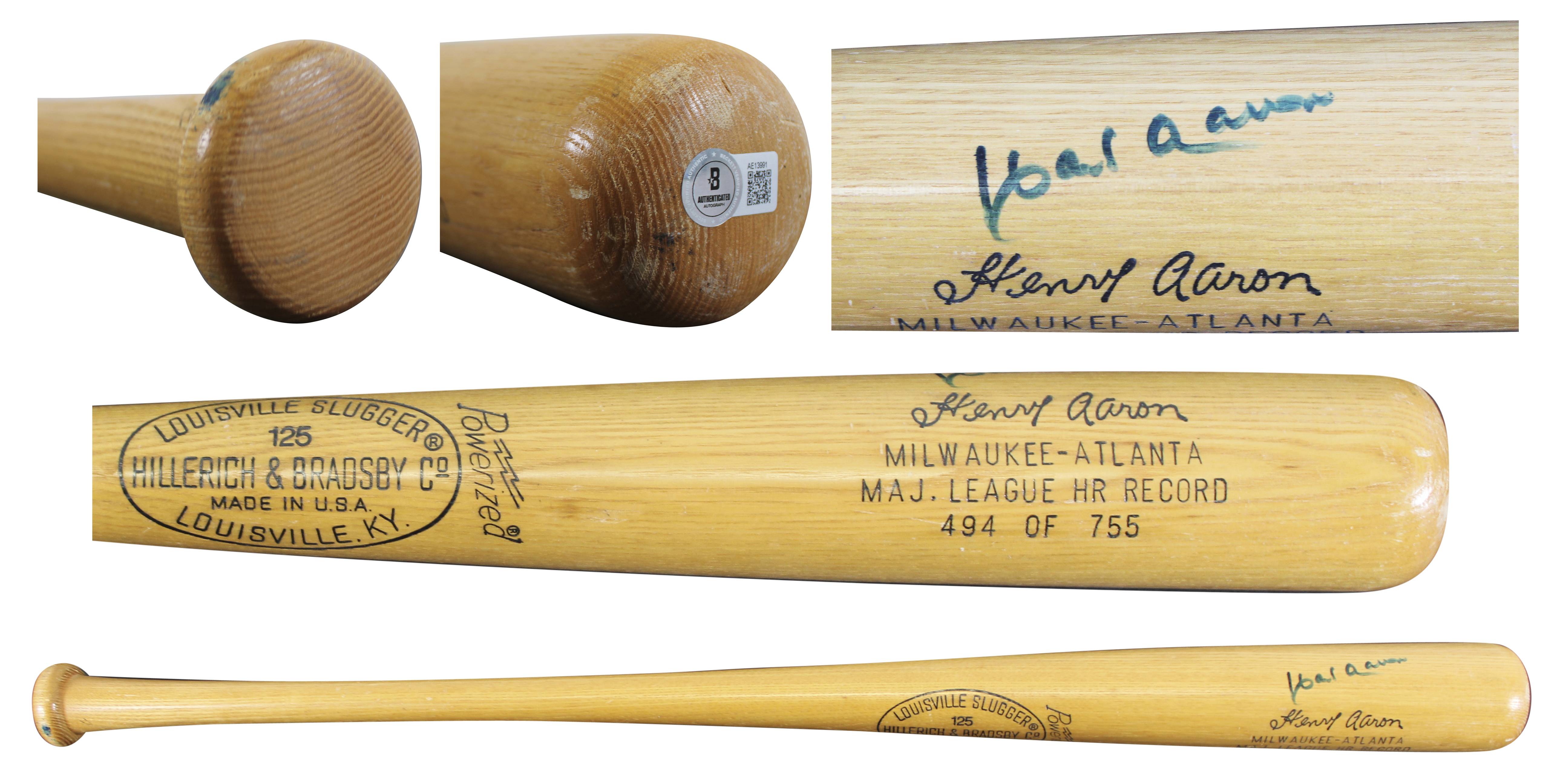 This Autographed Hillerich & Bradsby Louisville Slugger Player Model Baseball Bat has been Personally Signed by Hank Aaron of the Atlanta Braves. This item is 100% Authentic to include a Certificate of Authenticity (COA) / hologram by Beckett Authentication Services. The authenticity can be verified on Beckett Authentication Services website.