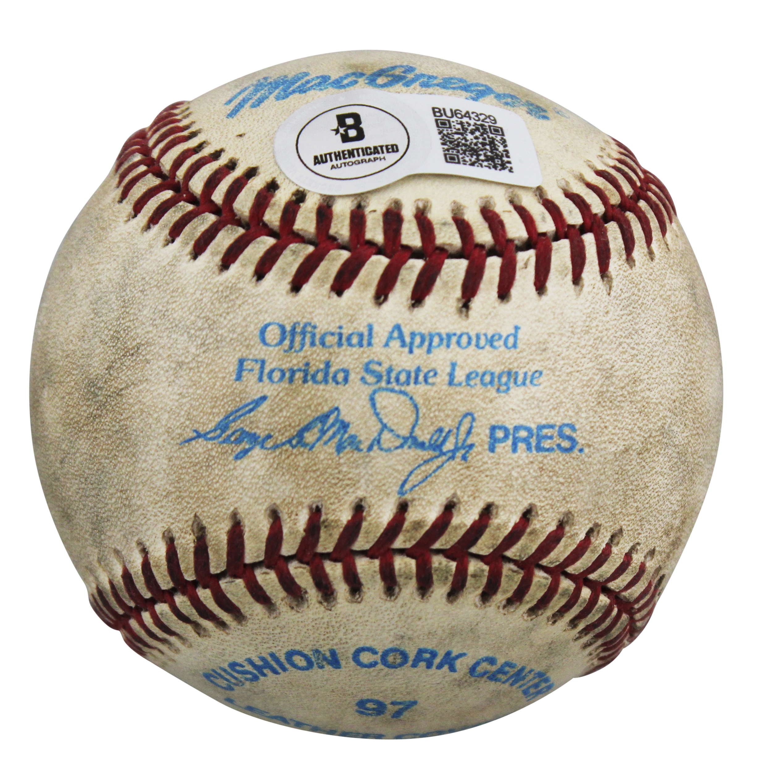 This Autographed MacGregor Florida State League Baseball has been Personally Signed by carlos arroyo of the Texas Rangers. This item is 100% Authentic to include a hologram by Beckett Authentication Services. This item will come with an affixed Beckett Authentication Services (BAS) authentication sticker, which includes a scannable QR code to verify authenticity. Please note that Beckett no longer provides serial-numbered COA cards, and the attached BAS sticker will serve as the complete authentication for this item. The authenticity can be verified on Beckett Authentication Services website.