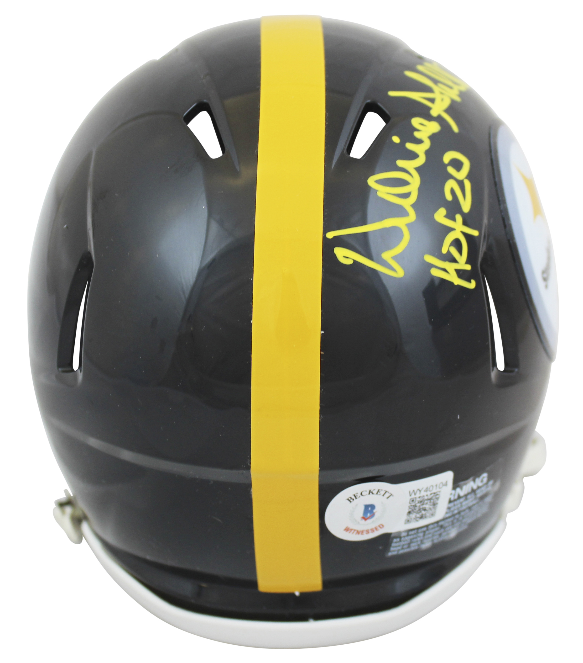 This Autographed Speed Mini Helmet W/ Uv Mirrored Back Acrylic Display Case with the inscription of "HOF 2020" has been Personally Signed by Donnie Shell of the Pittsburgh Steelers. This item is 100% Authentic to include a hologram by Beckett Authentication Services. This item will come with an affixed Beckett Authentication Services (BAS) authentication sticker, which includes a scannable QR code to verify authenticity. Please note that Beckett no longer provides serial-numbered COA cards, and the attached BAS sticker will serve as the complete authentication for this item. This is a BAS Witnessed Protection Program item which means a Beckett Authentication Service representative was present when this item was being signed. We conducted an autograph signing with Donnie Shell where multiples of the same item were signed. While the photographs are representative of this item, the size, placement and strength of the signature may vary. Each item is hand signed, therefore, each autograph is unique. This item can be verified through BAS Witnessed.