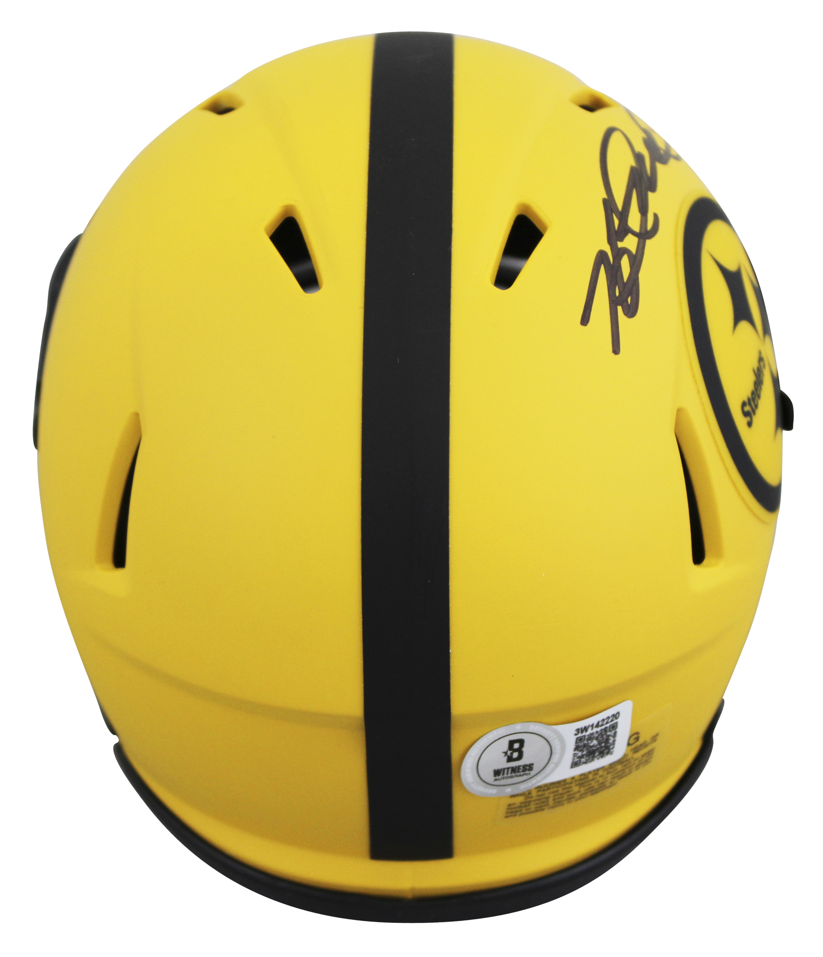 This Autographed Alternate Rave Speed Mini Helmet W/ Uv Mirrored Back Acrylic Display Case has been Personally Signed by Heath Miller of the Pittsburgh Steelers. This item is 100% Authentic to include a hologram by Beckett Authentication Services. This item will come with an affixed Beckett Authentication Services (BAS) authentication sticker, which includes a scannable QR code to verify authenticity. Please note that Beckett no longer provides serial-numbered COA cards, and the attached BAS sticker will serve as the complete authentication for this item. This is a BAS Witnessed Protection Program item which means a Beckett Authentication Service representative was present when this item was being signed. We conducted an autograph signing with Heath Miller where multiples of the same item were signed. While the photographs are representative of this item, the size, placement and strength of the signature may vary. Each item is hand signed, therefore, each autograph is unique. This item can be verified through BAS Witnessed.