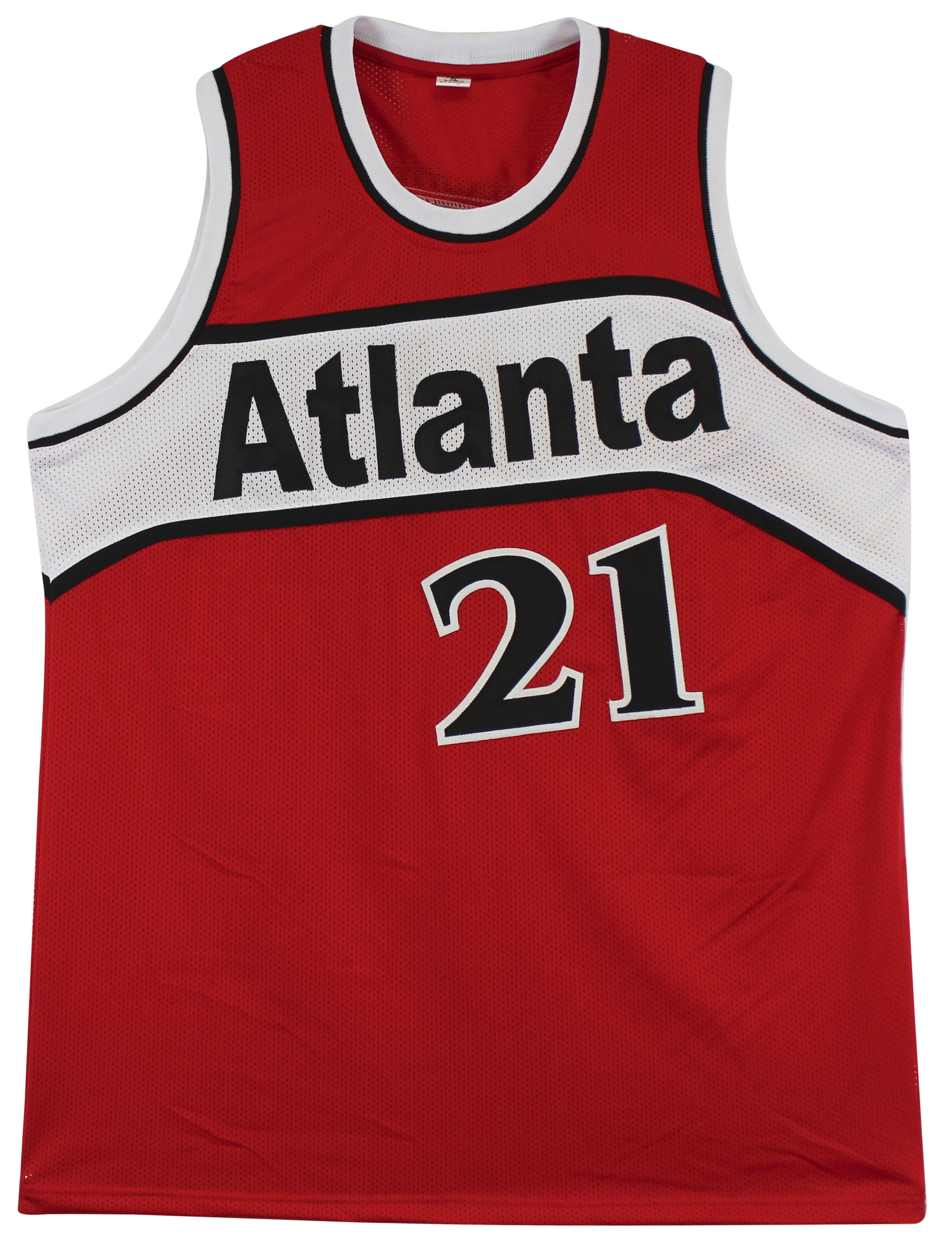 This Autographed w/ Black Numbers Red Pro Style Jersey has been Personally Signed by Dominique Wilkins of the Atlanta Hawks. This item is 100% Authentic to include a hologram by Beckett Authentication Services. This item will come with the new Beckett Authentication hologram that has a scannable QR code rather than the traditional COA. If you would like to have a COA, you are welcome to reach out to Beckett for a printed certification once you receive your item. This is a BAS Witnessed Protection Program item which means a Beckett Authentication Service representative was present when this item was being signed. We conducted an autograph signing with Dominique Wilkins where multiples of the same item were signed. While the photographs are representative of this item, the size, placement and strength of the signature may vary. Each item is hand signed, therefore, each autograph is unique. This item can be verified through BAS Witnessed. This is a X-Large sized, non-branded, custom-stitched Jersey.