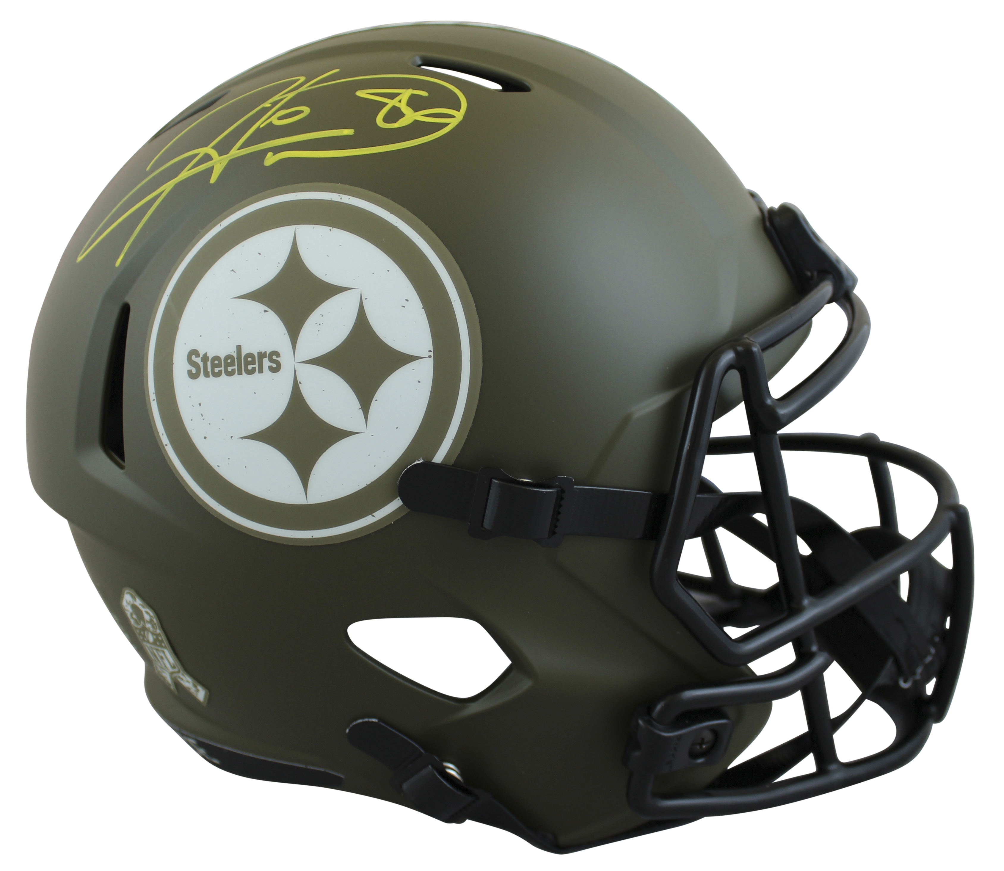 This Autographed Alternate Salute To Service Riddell Full Size Speed Rep Helmet W/ Uv Mirrored Back Acrylic Display Case has been Personally Signed by Hines Ward of the Pittsburgh Steelers. This item is 100% Authentic to include a hologram by Beckett Authentication Services. This item will come with an affixed Beckett Authentication Services (BAS) authentication sticker, which includes a scannable QR code to verify authenticity. Please note that Beckett no longer provides serial-numbered COA cards, and the attached BAS sticker will serve as the complete authentication for this item. This is a BAS Witnessed Protection Program item which means a Beckett Authentication Service representative was present when this item was being signed. We conducted an autograph signing with Hines Ward where multiples of the same item were signed. While the photographs are representative of this item, the size, placement and strength of the signature may vary. Each item is hand signed, therefore, each autograph is unique. This item can be verified through BAS Witnessed.