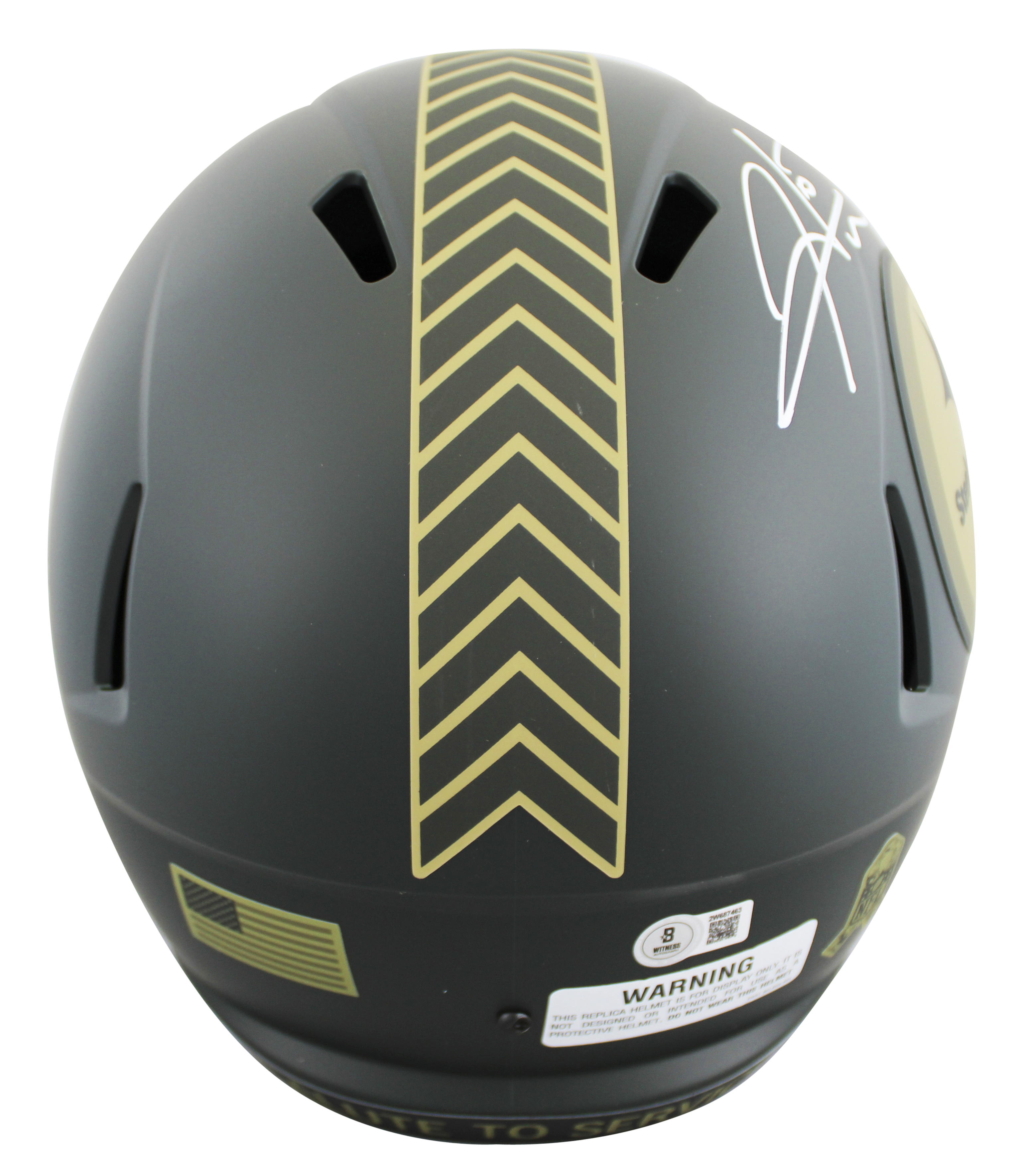 This Autographed Alternate 2025 Salute to Service IV Riddell Full Size Speed Rep Helmet has been Personally Signed by Hines Ward of the Pittsburgh Steelers. This item is 100% Authentic to include a hologram by Beckett Authentication Services. This item will come with an affixed Beckett Authentication Services (BAS) authentication sticker, which includes a scannable QR code to verify authenticity. Please note that Beckett no longer provides serial-numbered COA cards, and the attached BAS sticker will serve as the complete authentication for this item. This is a BAS Witnessed Protection Program item which means a Beckett Authentication Service representative was present when this item was being signed. We conducted an autograph signing with Hines Ward where multiples of the same item were signed. While the photographs are representative of this item, the size, placement and strength of the signature may vary. Each item is hand signed, therefore, each autograph is unique. This item can be verified through BAS Witnessed.