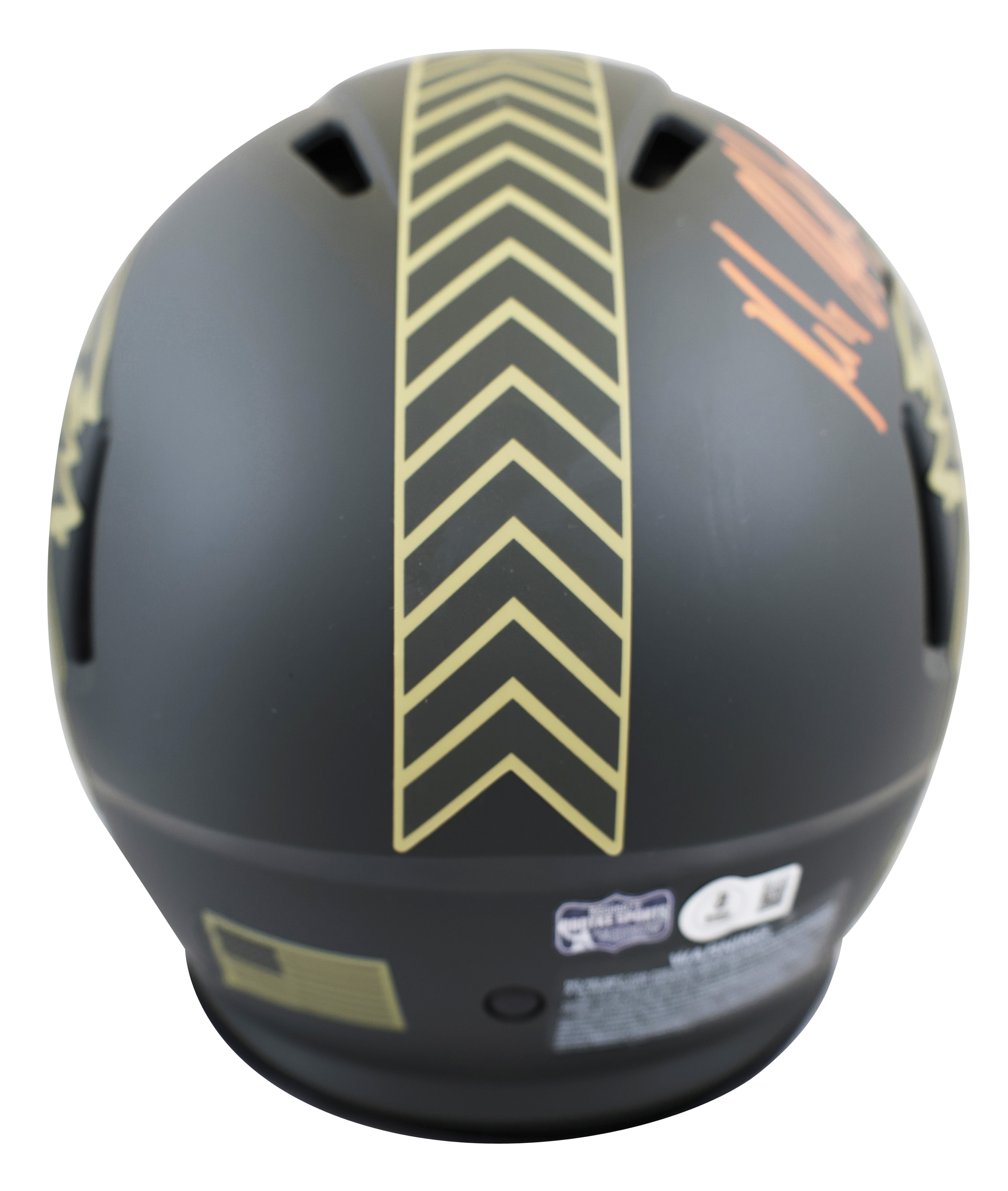 This Autographed Alternate 2025 Salute to Service IV Riddell Full Size Speed Proline Helmet W/ Uv Mirrored Back Acrylic Display Case has been Personally Signed by Rob Gronkowski of the Tampa Bay Buccaneers. This item is 100% Authentic to include a hologram by Beckett Authentication Services. This item will come with an affixed Beckett Authentication Services (BAS) authentication sticker, which includes a scannable QR code to verify authenticity. Please note that Beckett no longer provides serial-numbered COA cards, and the attached BAS sticker will serve as the complete authentication for this item. This is a BAS Witnessed Protection Program item which means a Beckett Authentication Service representative was present when this item was being signed. We conducted an autograph signing with Rob Gronkowski where multiples of the same item were signed. While the photographs are representative of this item, the size, placement and strength of the signature may vary. Each item is hand signed, therefore, each autograph is unique. This item can be verified through BAS Witnessed.