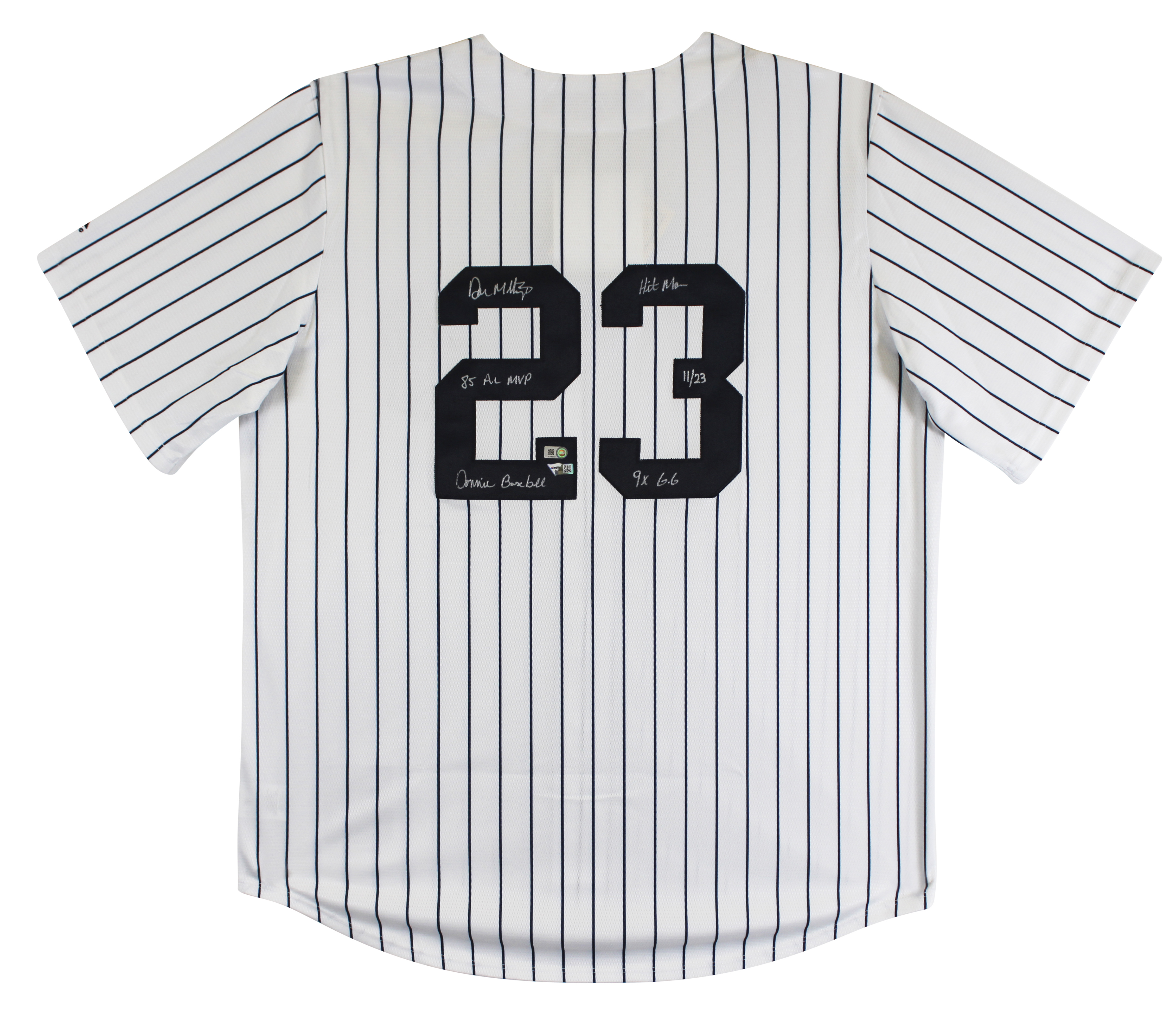 This Autographed White Pinstripe Majestic Cooperstown Collection Limited Edition #11/23 Jersey with the inscription of "Hit Man, Donnie Baseball, 1985 AL MVP, 9x G.G." has been Personally Signed by Don Mattingly of the New York Yankees. This item is 100% Authentic to includes a numbered hologram by Fanatics. The authenticity can be verified on Fanatics website. This is a Large sized Jersey.