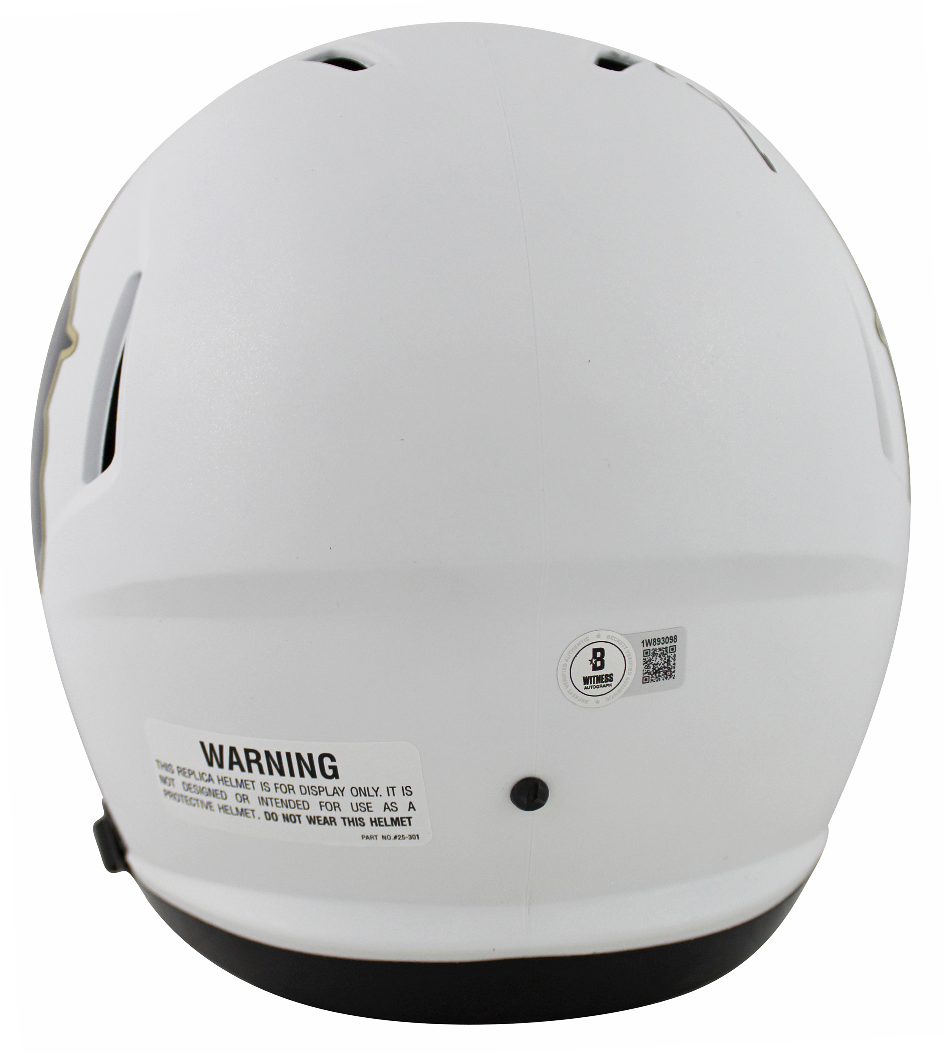 This Autographed Alternate Matte White Full Size Speed Rep Helmet has been Personally Signed by Deion Sanders of the Colorado Buffaloes. This item is 100% Authentic to include a hologram by Beckett Authentication Services. This item will come with an affixed Beckett Authentication Services (BAS) authentication sticker, which includes a scannable QR code to verify authenticity. Please note that Beckett no longer provides serial-numbered COA cards, and the attached BAS sticker will serve as the complete authentication for this item. This is a BAS Witnessed Protection Program item which means a Beckett Authentication Service representative was present when this item was being signed. We conducted an autograph signing with Deion Sanders where multiples of the same item were signed. While the photographs are representative of this item, the size, placement and strength of the signature may vary. Each item is hand signed, therefore, each autograph is unique. This item can be verified through BAS Witnessed.