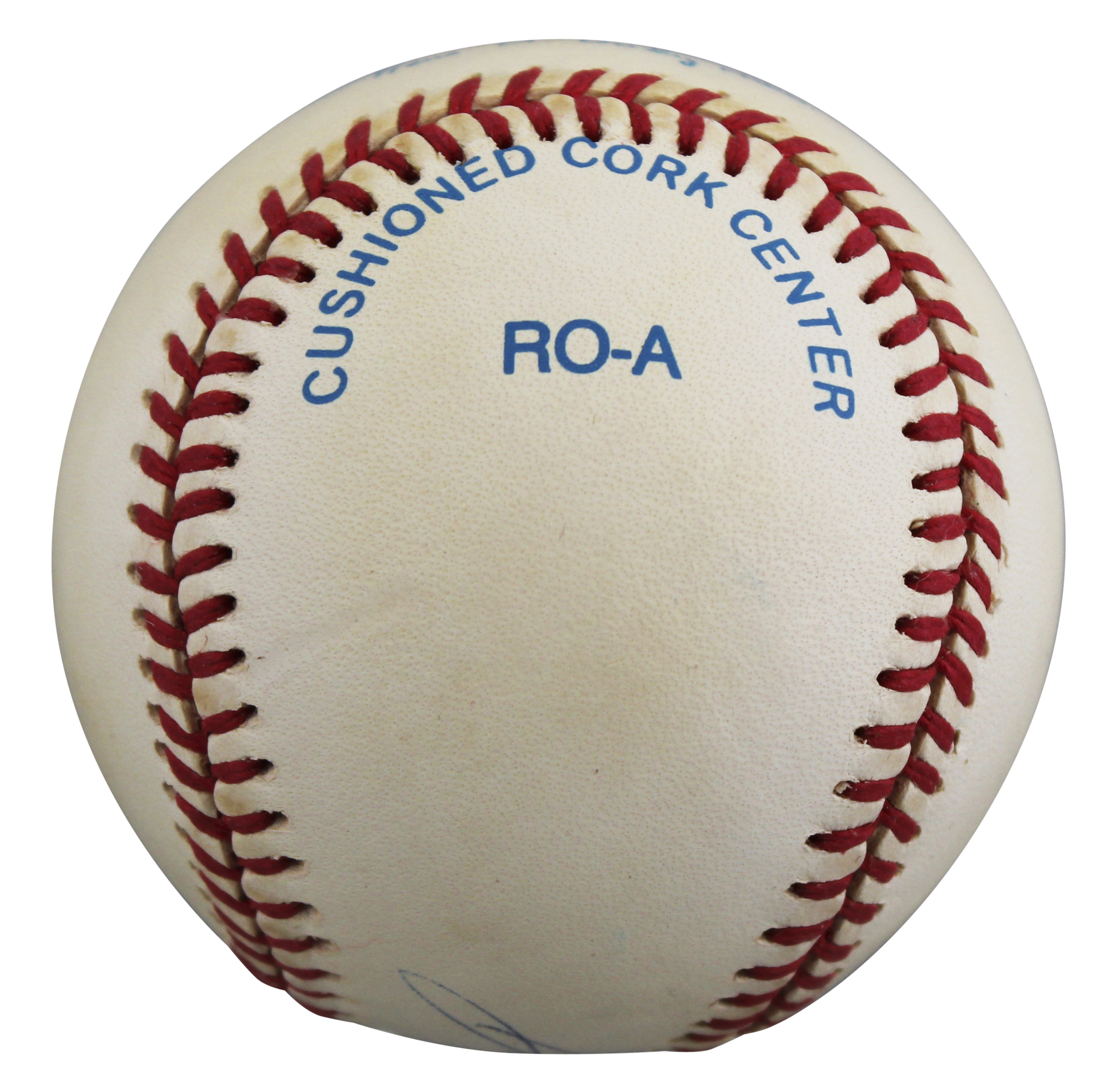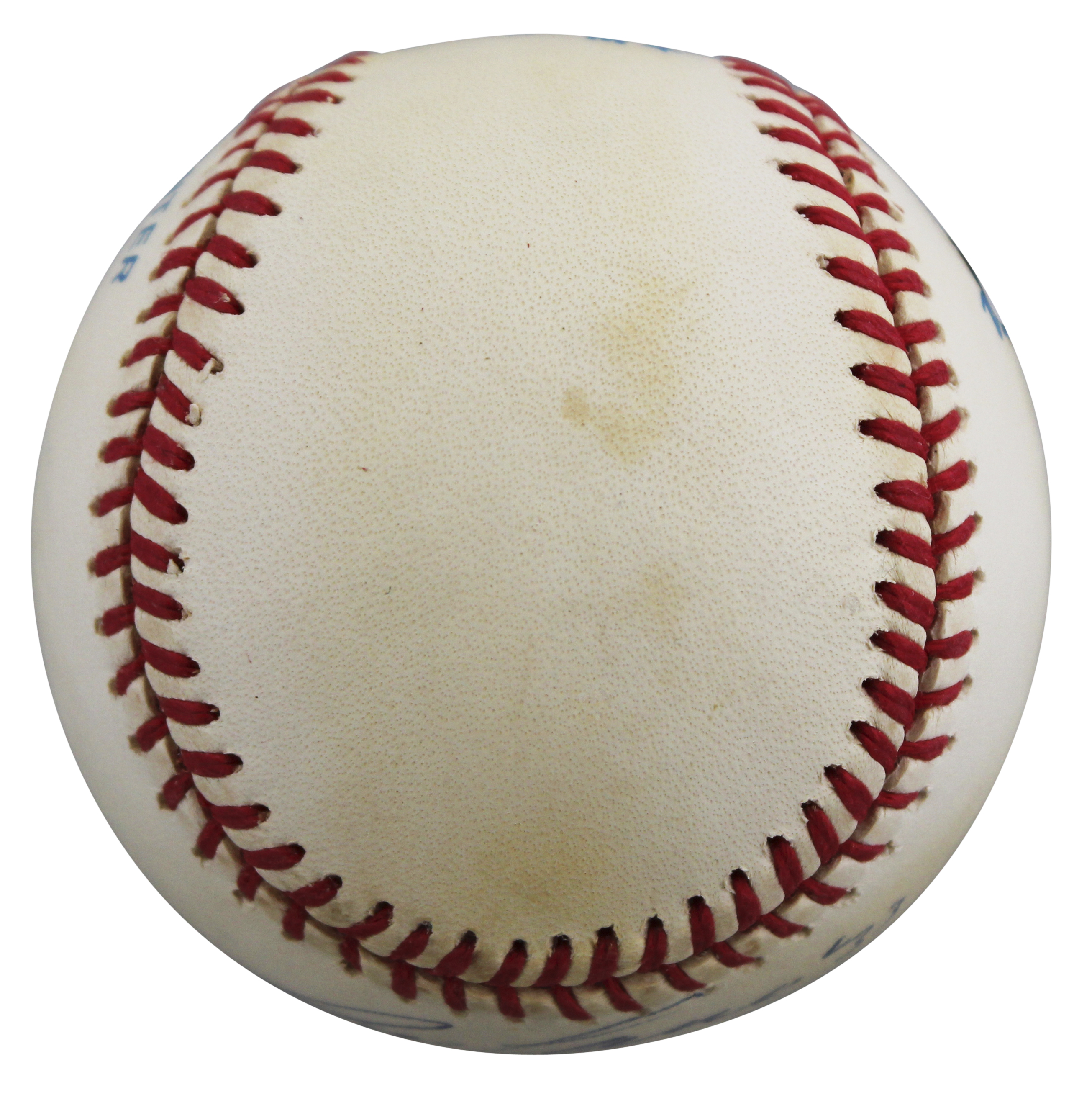 This Autographed Gene Budig Baseball with the inscription of "88 MVP" has been Personally Signed by Jose Canseco of the Oakland Athletics. This item is 100% Authentic to include a hologram by Beckett Authentication Services. This item will come with an affixed Beckett Authentication Services (BAS) authentication sticker, which includes a scannable QR code to verify authenticity. Please note that Beckett no longer provides serial-numbered COA cards, and the attached BAS sticker will serve as the complete authentication for this item. The authenticity can be verified on Beckett Authentication Services website.