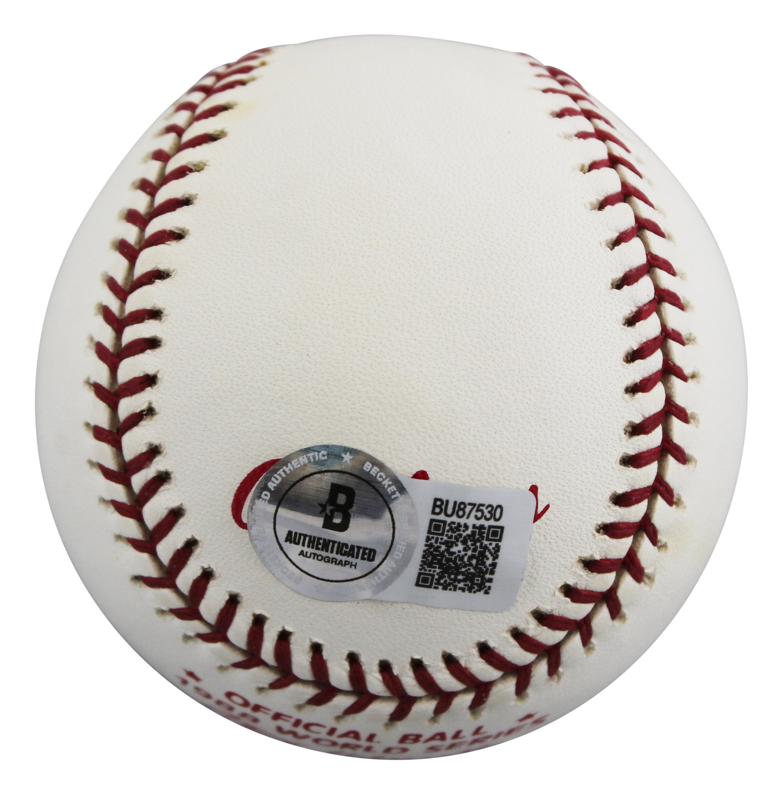 This Autographed 1988 World Series Logo Baseball has been Personally Signed by Jose Canseco of the Oakland Athletics. This item is 100% Authentic to include a hologram by Beckett Authentication Services. This item will come with an affixed Beckett Authentication Services (BAS) authentication sticker, which includes a scannable QR code to verify authenticity. Please note that Beckett no longer provides serial-numbered COA cards, and the attached BAS sticker will serve as the complete authentication for this item. The authenticity can be verified on Beckett Authentication Services website.