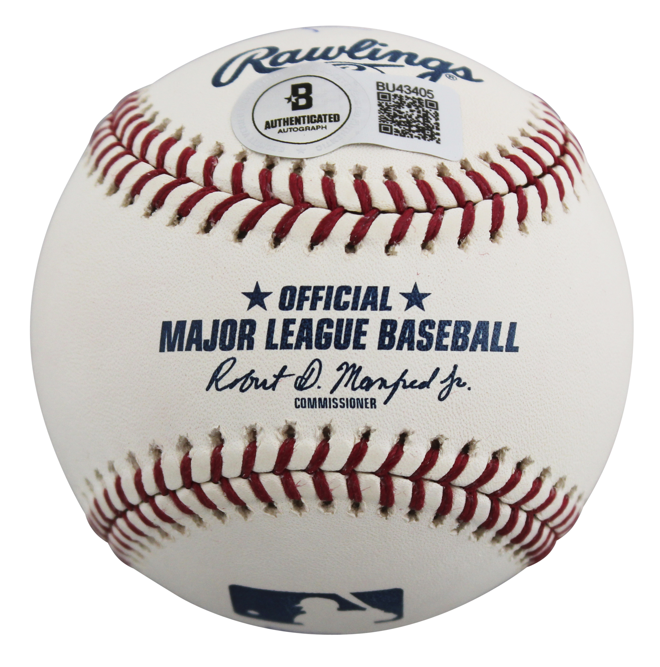 This Autographed Gene Budig Baseball with the inscription of "88 MVP" has been Personally Signed by Jose Canseco of the Oakland Athletics. This item is 100% Authentic to include a hologram by Beckett Authentication Services. This item will come with an affixed Beckett Authentication Services (BAS) authentication sticker, which includes a scannable QR code to verify authenticity. Please note that Beckett no longer provides serial-numbered COA cards, and the attached BAS sticker will serve as the complete authentication for this item. The authenticity can be verified on Beckett Authentication Services website.