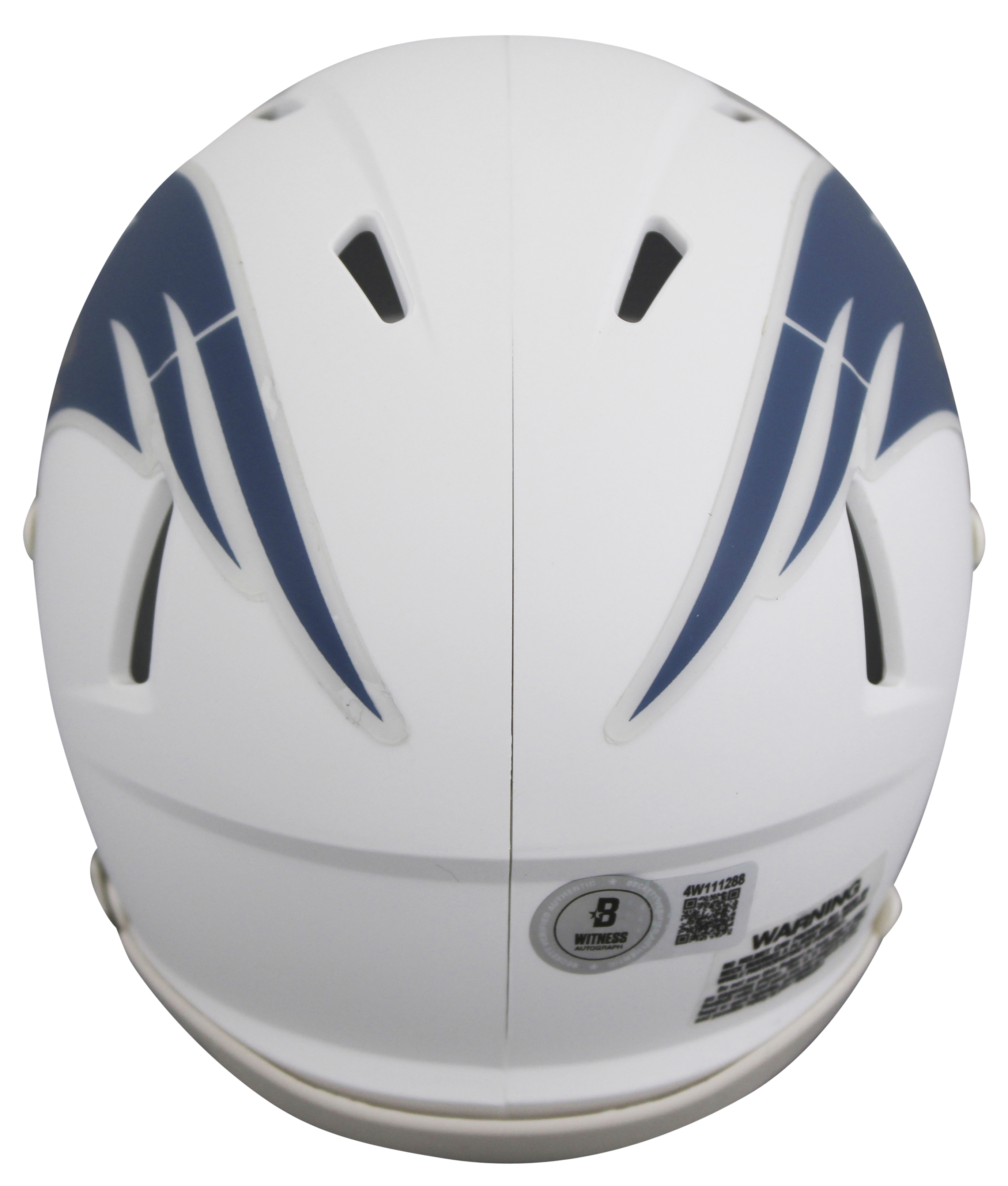 This Autographed 2025 On-Field Alternate Speed Mini Helmet W/ Uv Mirrored Back Acrylic Display Case has been Personally Signed by Randy Moss of the New England Patriots. This item is 100% Authentic to include a hologram by Beckett Authentication Services. This item will come with an affixed Beckett Authentication Services (BAS) authentication sticker, which includes a scannable QR code to verify authenticity. Please note that Beckett no longer provides serial-numbered COA cards, and the attached BAS sticker will serve as the complete authentication for this item. This is a BAS Witnessed Protection Program item which means a Beckett Authentication Service representative was present when this item was being signed. We conducted an autograph signing with Randy Moss where multiples of the same item were signed. While the photographs are representative of this item, the size, placement and strength of the signature may vary. Each item is hand signed, therefore, each autograph is unique. This item can be verified through BAS Witnessed.