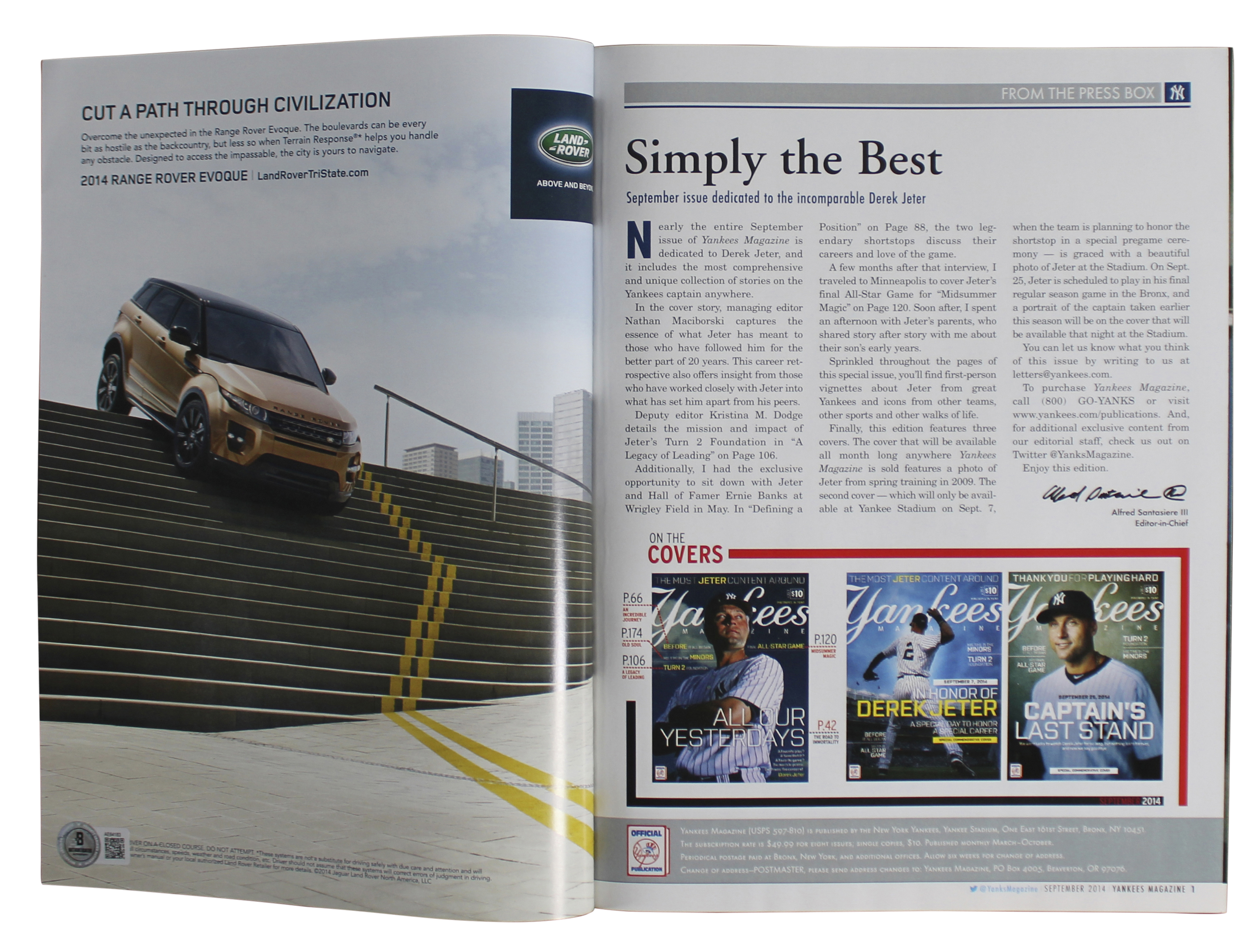 Yankees Derek Jeter Signed September 2014 Yankees Magazine MLB & BAS #AE64183