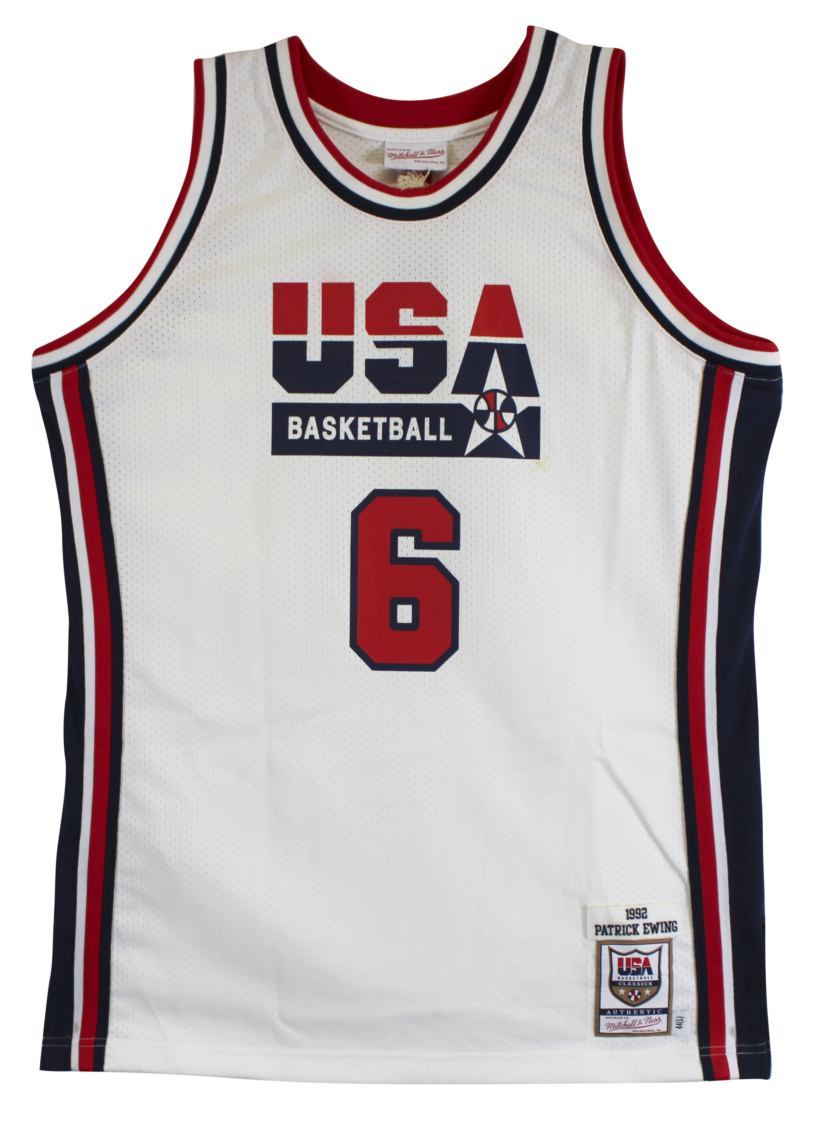 This Autographed White Mitchell & Ness 1992 USA Basketball Classics Authentic SIze 44 Jersey has been Personally Signed by Patrick Ewing of the New York Knicks. This item is 100% Authentic to include a hologram by Beckett Authentication Services. This item will come with an affixed Beckett Authentication Services (BAS) authentication sticker, which includes a scannable QR code to verify authenticity. Please note that Beckett no longer provides serial-numbered COA cards, and the attached BAS sticker will serve as the complete authentication for this item. This is a BAS Witnessed Protection Program item which means a Beckett Authentication Service representative was present when this item was being signed. The authenticity can be verified on Beckett Authentication Services website. This is a X-Large sized Jersey.