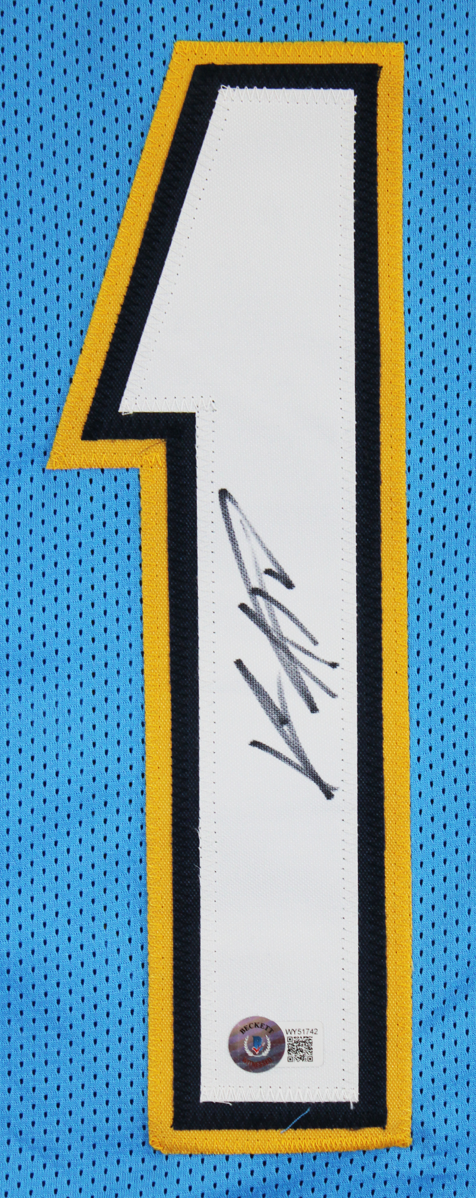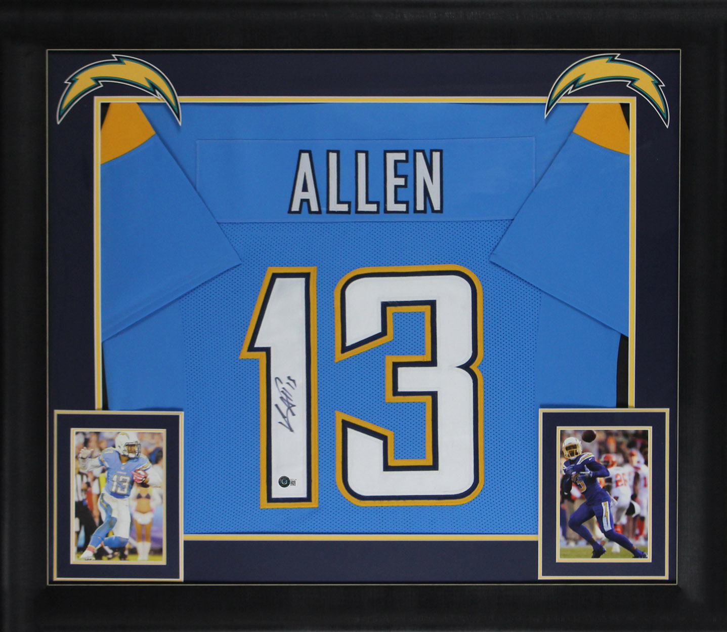 This Autographed Powder Blue Pro Style Framed Jersey has been Personally Signed by Keenan Allen of the Los Angeles Chargers. This item is 100% Authentic to include a hologram by Beckett Authentication Services. This item will come with an affixed Beckett Authentication Services (BAS) authentication sticker, which includes a scannable QR code to verify authenticity. Please note that Beckett no longer provides serial-numbered COA cards, and the attached BAS sticker will serve as the complete authentication for this item. This is a BAS Witnessed Protection Program item which means a Beckett Authentication Service representative was present when this item was being signed. We conducted an autograph signing with Keenan Allen where multiples of the same item were signed. While the photographs are representative of this item, the size, placement and strength of the signature may vary. Each item is hand signed, therefore, each autograph is unique. This item can be verified through BAS Witnessed. This item has been professionally framed to overall dimensions of approximately 32 x 37 inches. This is a X-Large sized, non-branded, custom-stitched Framed Jersey. This jersey will be framed to order, it will take approximately 3-4 business days from purchase date for it to ship.