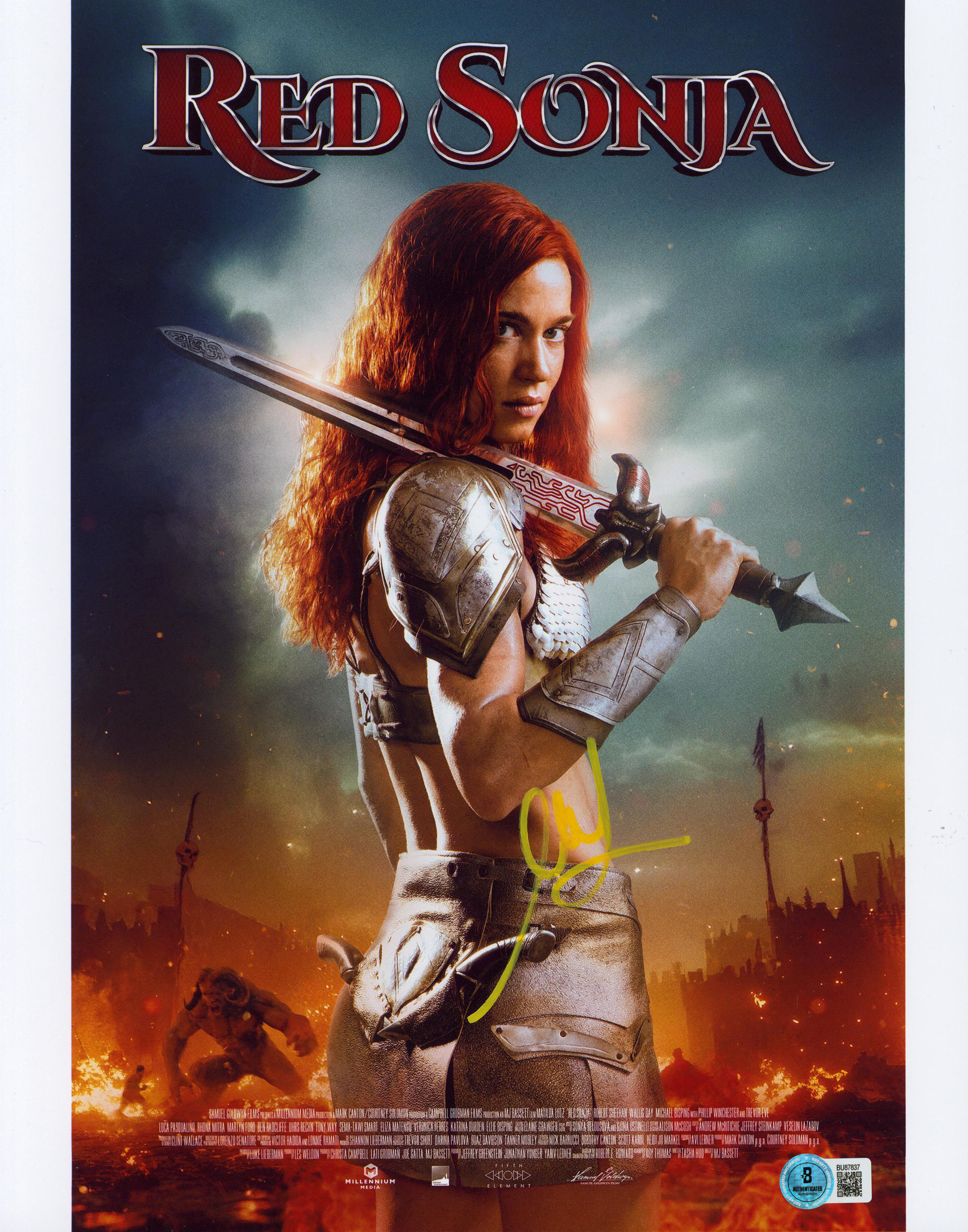 This Autographed Vertical 11x14 Photo has been Personally Signed by Matilda Lutz of Red Sonja. This item is 100% Authentic to include a hologram by Beckett Authentication Services. This item will come with an affixed Beckett Authentication Services (BAS) authentication sticker, which includes a scannable QR code to verify authenticity. Please note that Beckett no longer provides serial-numbered COA cards, and the attached BAS sticker will serve as the complete authentication for this item. The authenticity can be verified on Beckett Authentication Services website.