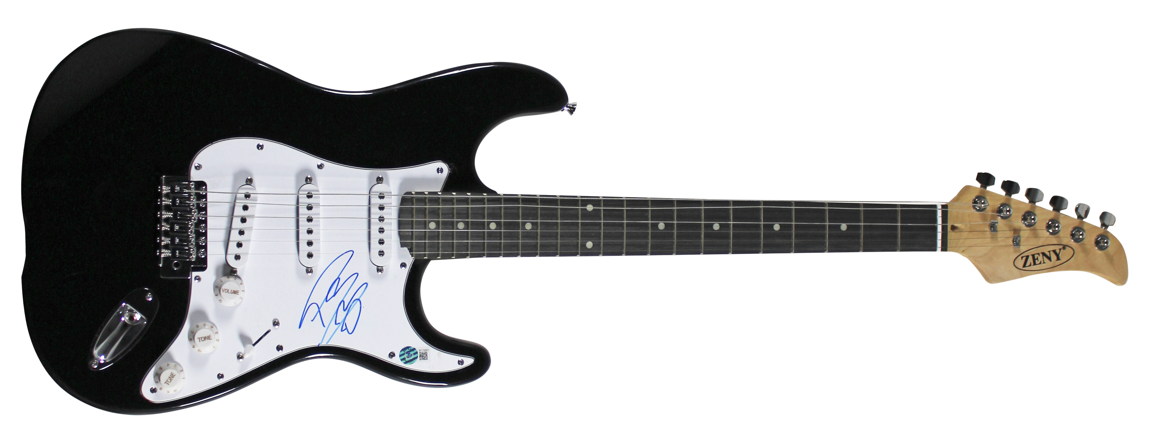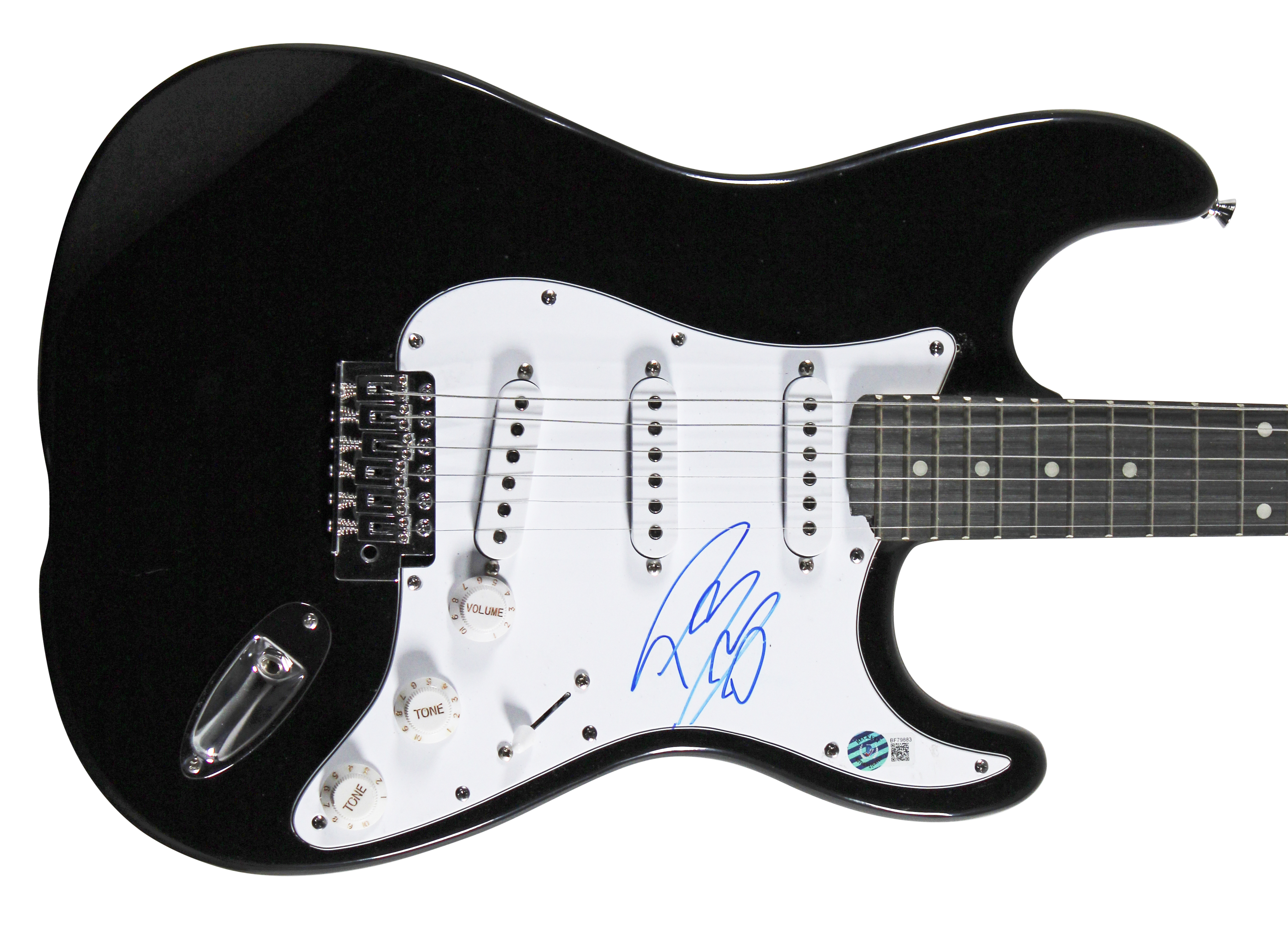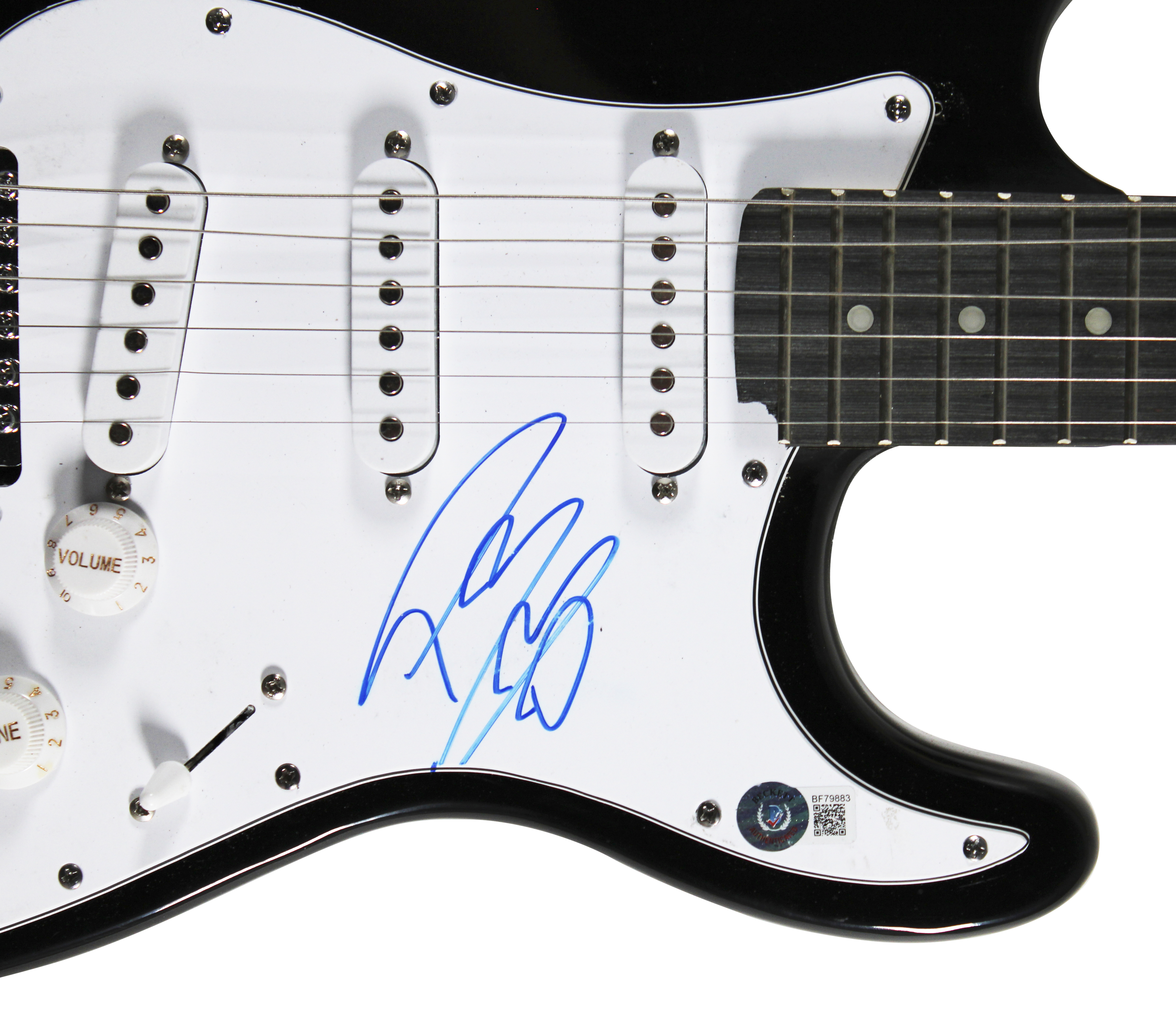 This Autographed Black Electric Guitar has been Personally Signed by Post Malone. This item is 100% Authentic to include a hologram by Beckett Authentication Services. This item will come with an affixed Beckett Authentication Services (BAS) authentication sticker, which includes a scannable QR code to verify authenticity. Please note that Beckett no longer provides serial-numbered COA cards, and the attached BAS sticker will serve as the complete authentication for this item.The authenticity can be verified on Beckett Authentication Services website. The signature is slightly smeared. The guitar has some wear and scratches on the body, and one of the strings is loose. Please refer to pictures for item's condition.