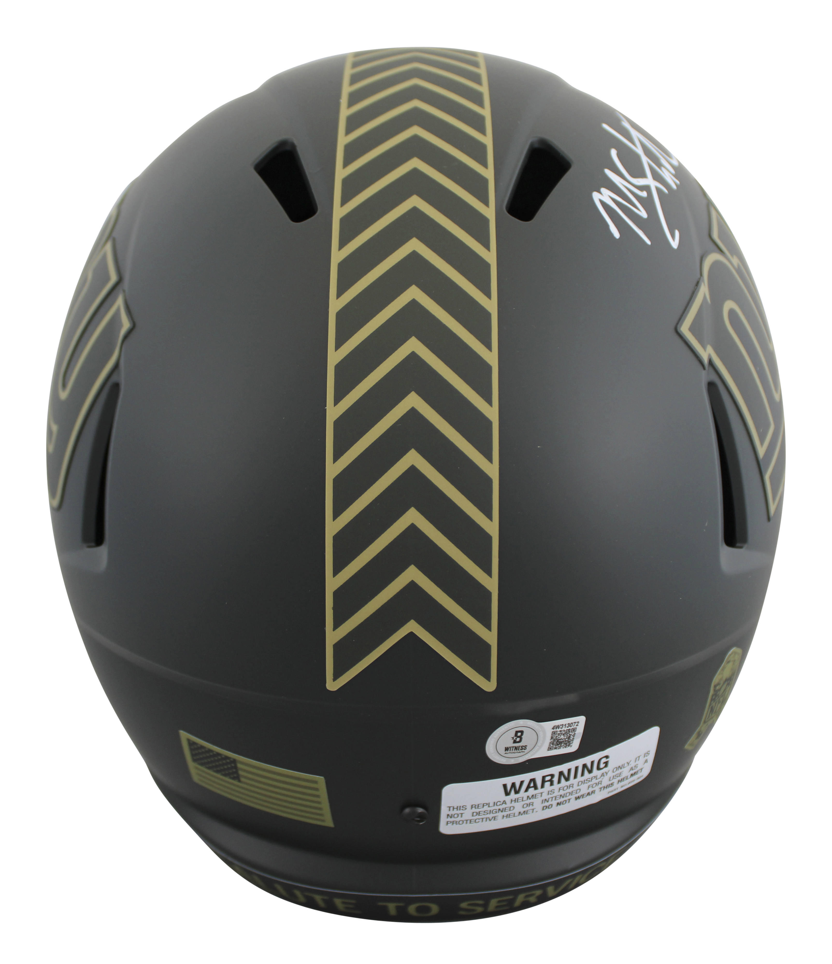 This Autographed Alternate 2025 Salute to Service IV Riddell Full Size Speed Rep Helmet has been Personally Signed by Michael Strahan of the New York Giants. This item is 100% Authentic to include a hologram by Beckett Authentication Services. This item will come with an affixed Beckett Authentication Services (BAS) authentication sticker, which includes a scannable QR code to verify authenticity. Please note that Beckett no longer provides serial-numbered COA cards, and the attached BAS sticker will serve as the complete authentication for this item. This is a BAS Witnessed Protection Program item which means a Beckett Authentication Service representative was present when this item was being signed. We conducted an autograph signing with Michael Strahan where multiples of the same item were signed. While the photographs are representative of this item, the size, placement and strength of the signature may vary. Each item is hand signed, therefore, each autograph is unique. This item can be verified through BAS Witnessed.