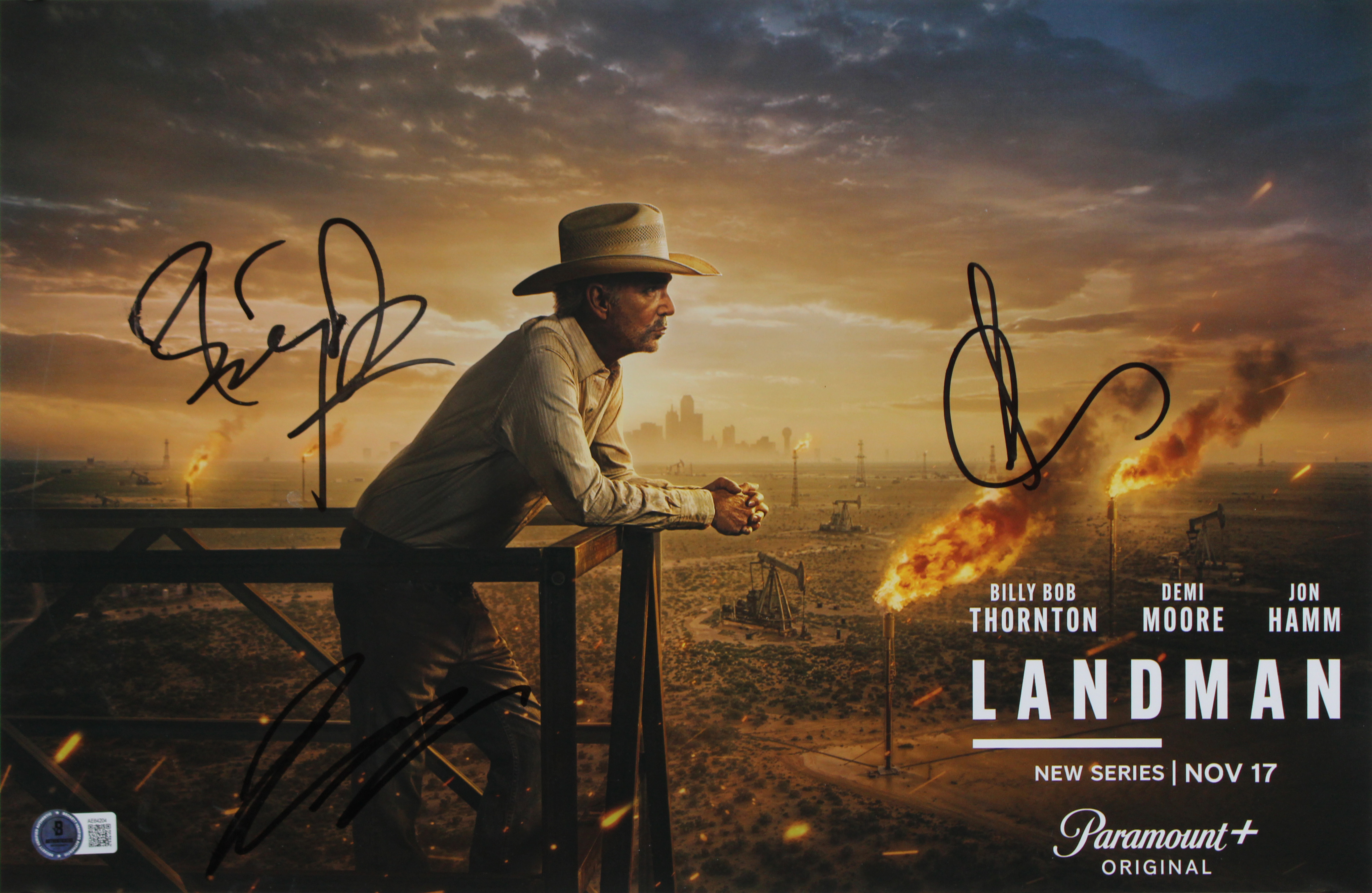 This Autographed 11x17 Photo has been Personally Signed by Billy Bob Thornton, Andy Garcia & Jacob Lofland of Landman. This item is 100% Authentic to include a Certificate of Authenticity (COA) / hologram by Beckett Authentication Services.The authenticity can be verified on Beckett Authentication Services website. This photo has some dimpling from handling and age.