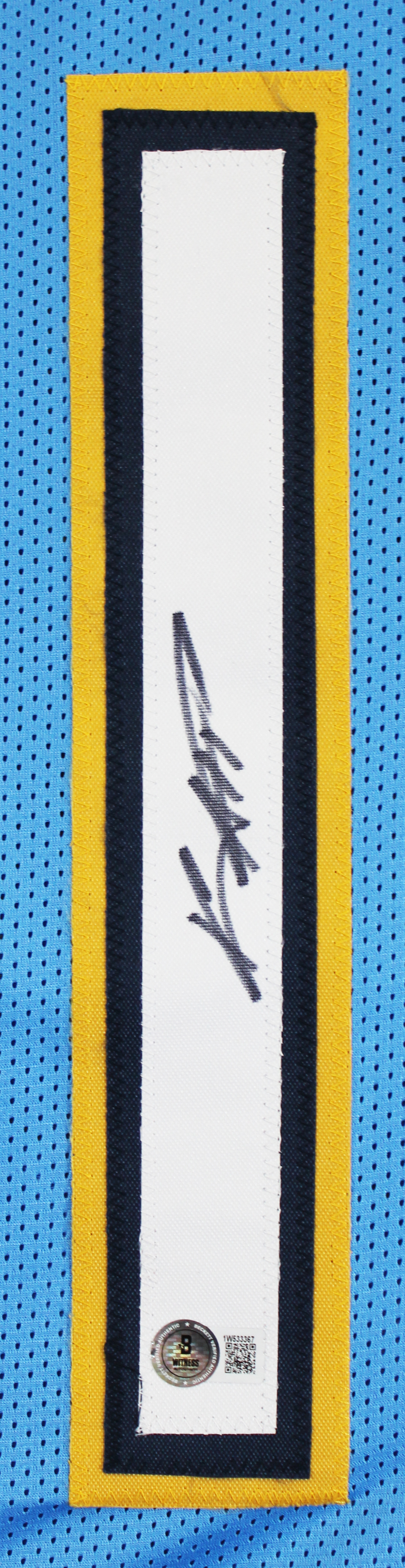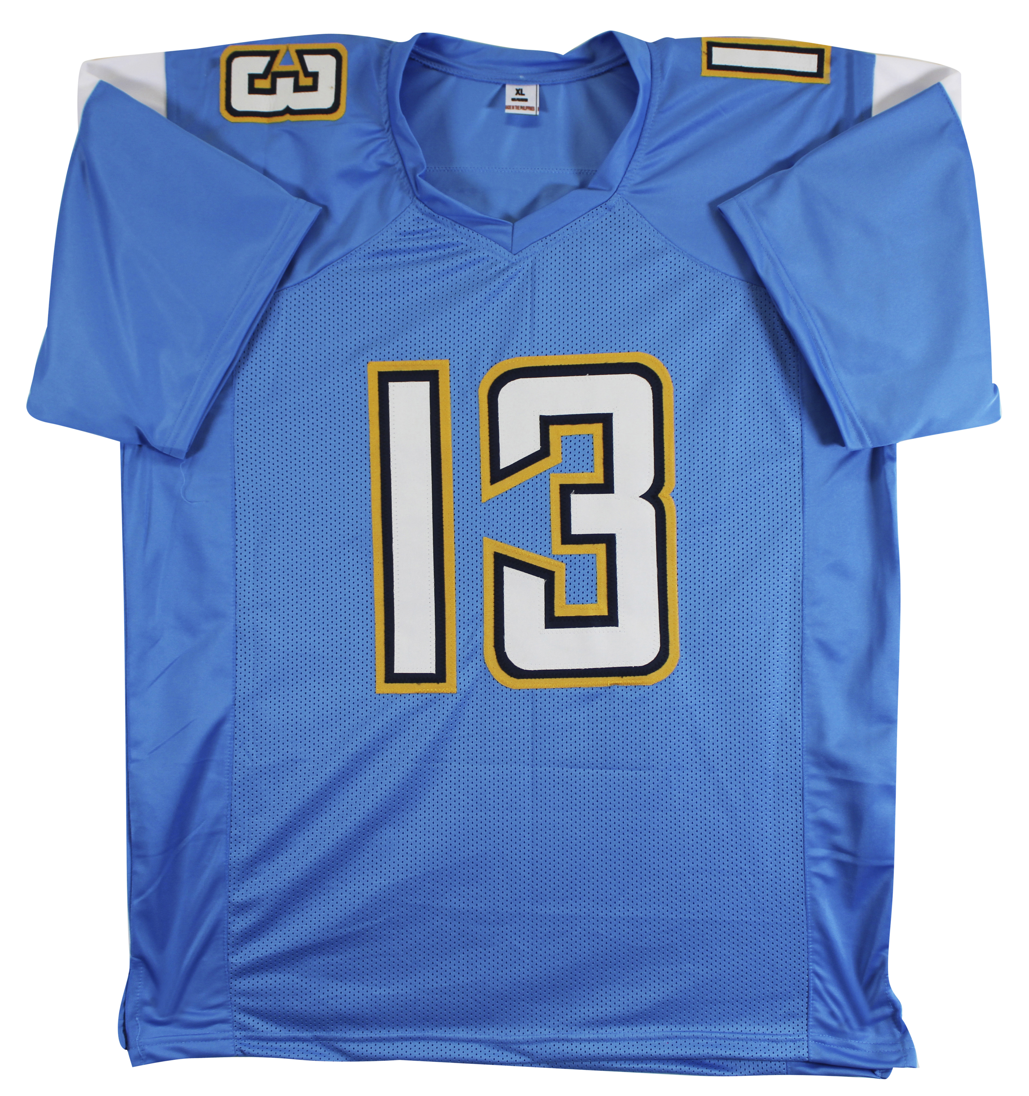 This Autographed Powder Blue Pro Style Jersey has been Personally Signed by Keenan Allen of the Los Angeles Chargers. This item is 100% Authentic to include a hologram by Beckett Authentication Services. This item will come with an affixed Beckett Authentication Services (BAS) authentication sticker, which includes a scannable QR code to verify authenticity. Please note that Beckett no longer provides serial-numbered COA cards, and the attached BAS sticker will serve as the complete authentication for this item. This is a BAS Witnessed Protection Program item which means a Beckett Authentication Service representative was present when this item was being signed. We conducted an autograph signing with Keenan Allen where multiples of the same item were signed. While the photographs are representative of this item, the size, placement and strength of the signature may vary. Each item is hand signed, therefore, each autograph is unique. This item can be verified through BAS Witnessed. This is a X-Large sized, non-branded, custom-stitched Jersey.