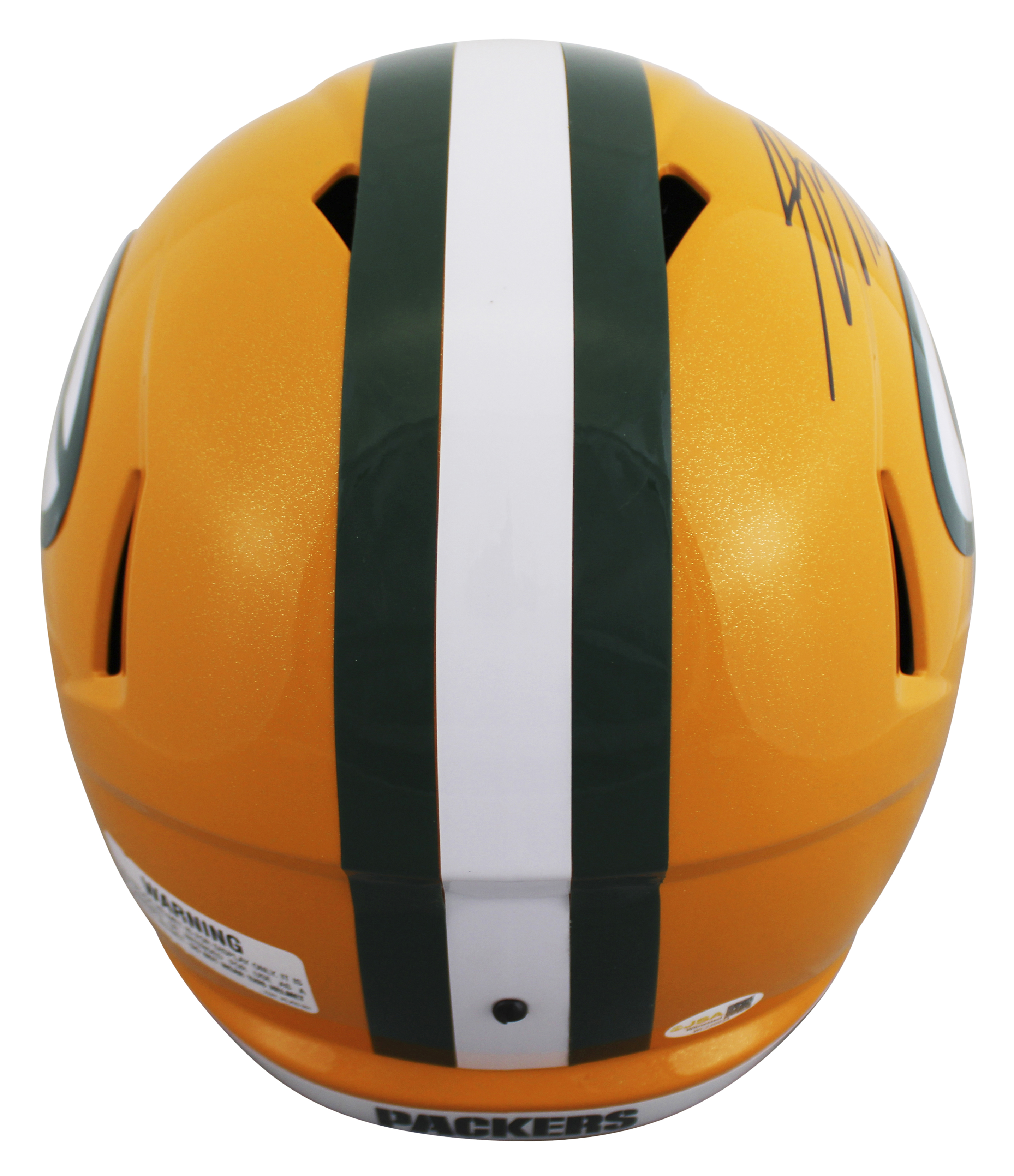This Autographed Riddell Full Size Speed Rep Helmet has been Personally Signed by Jordy Nelson of the Green Bay Packers. This item is 100% Authentic to include a hologram by James Spence Authentication Services. This item will come with an affixed James Spence Authentication Services (JSA) authentication sticker, which includes a scannable QR code to verify authenticity. Please note that JSA no longer provides serial-numbered COA cards with witnessed items, and the attached JSA sticker will serve as the complete authentication for this item. This is a JSA Witnessed Protection Program item which means a JSA representative was present when this item was being signed. We conducted an autograph signing with Jordy Nelson where multiples of the same item were signed. While the photographs are representative of this item, the size, placement and strength of the signature may vary. Each item is hand signed, therefore, each autograph is unique. This item can be verified through JSA Witness.