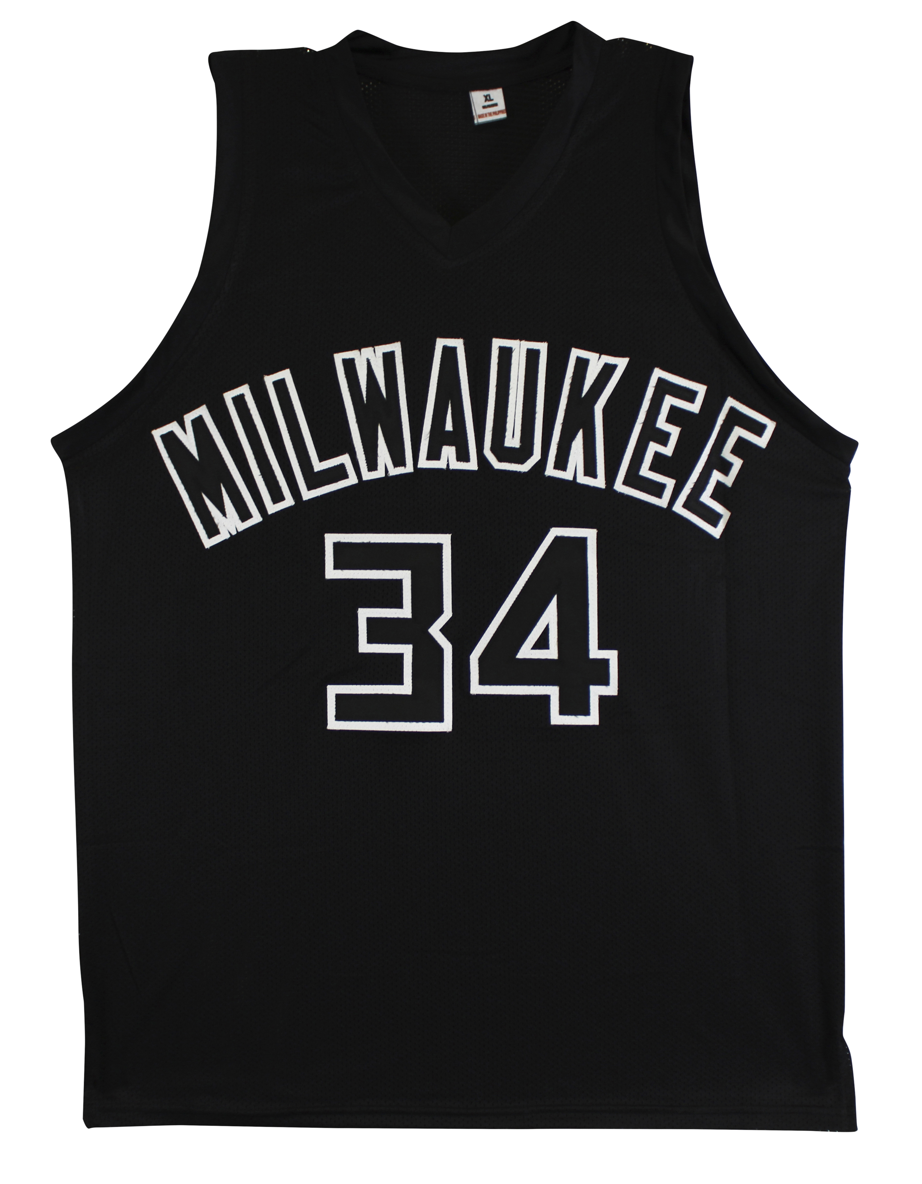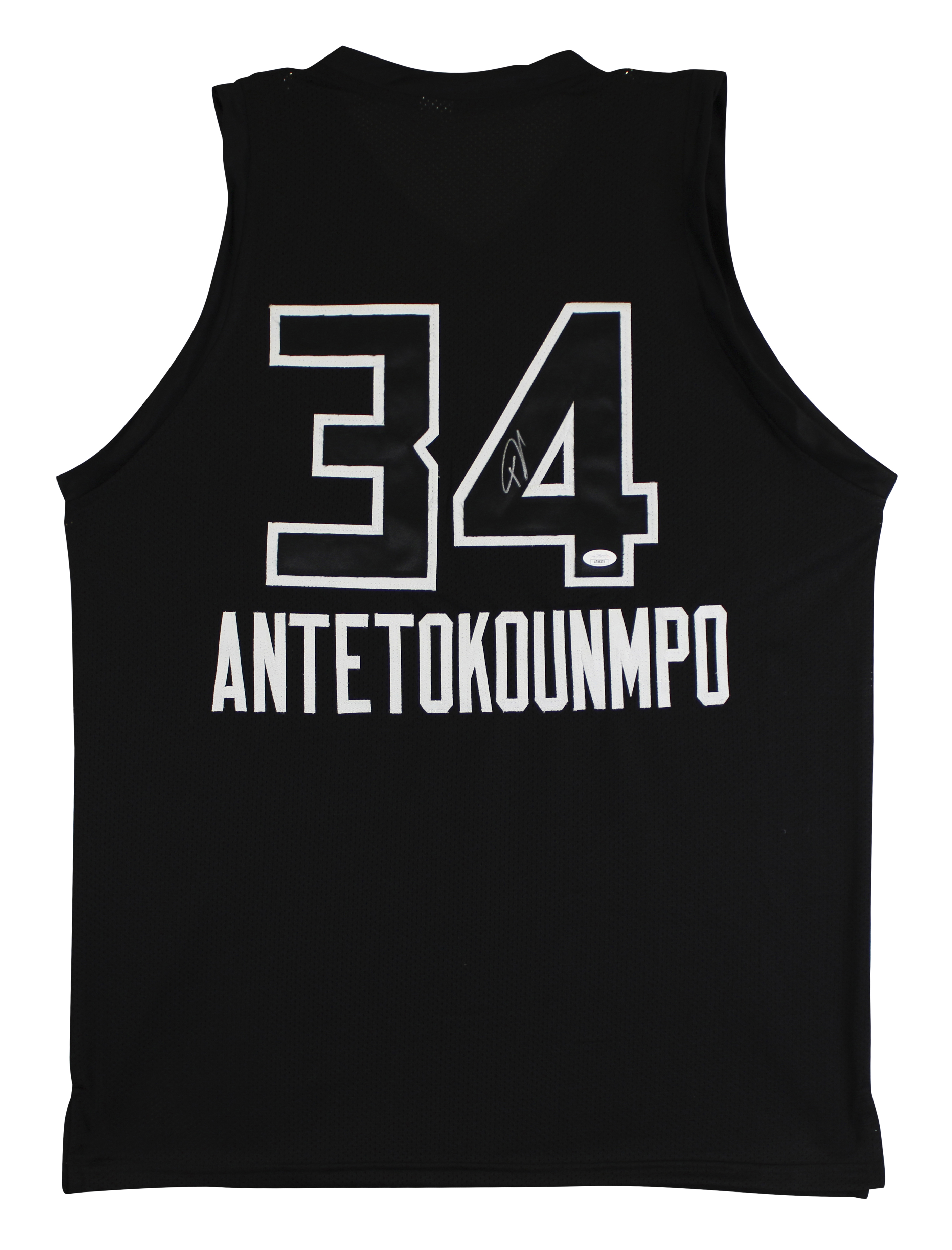 This Autographed w/ Black Numbers Black Pro Style Jersey has been Personally Signed by Giannis Antetokounmpo of the Milwaukee Bucks. This item is 100% Authentic to include a Certificate of Authenticity (COA) / hologram by JSA. We conducted an autograph signing with Giannis Antetokounmpo where multiples of the same item were signed. While the photographs are representative of this item, the size, placement and strength of the signature may vary. Each item is hand signed, therefore, each autograph is unique. This item can be verified through JSA. This is a X-Large sized, non-branded, custom-stitched Jersey.