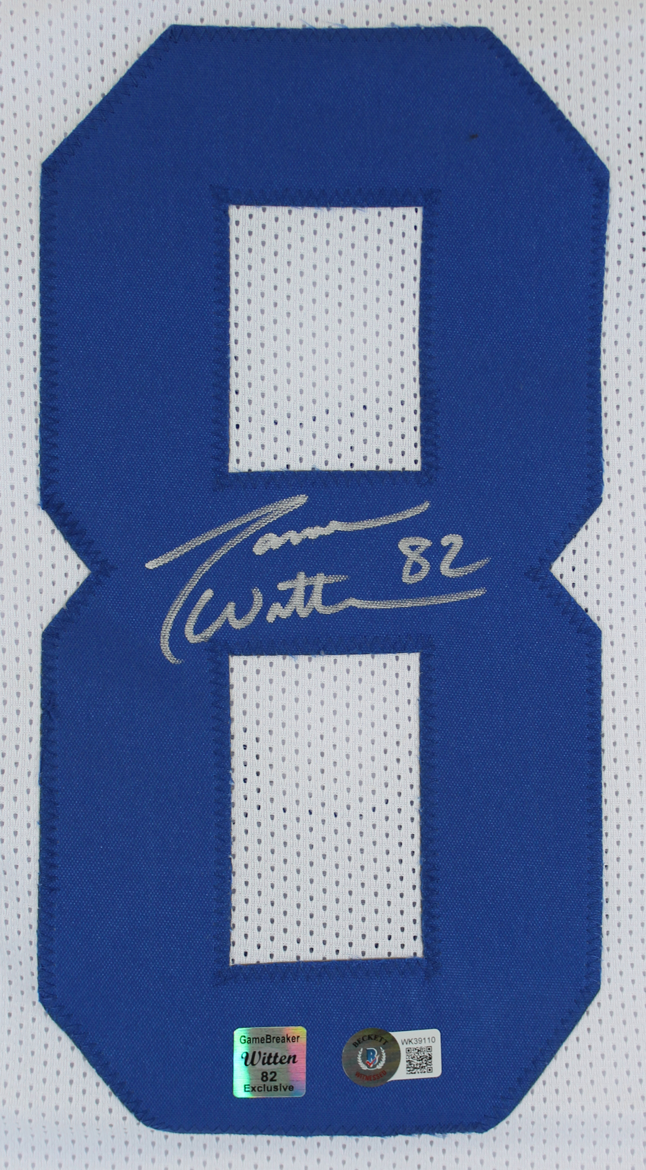 This Autographed White Pro Style Jersey has been Personally Signed by Jason Witten of the Dallas Cowboys. This item is 100% Authentic to include a hologram by Beckett Authentication Services. This item will come with the new Beckett Authentication hologram that has a scannable QR code rather than the traditional COA. If you would like to have a COA, you are welcome to reach out to Beckett for a printed certification once you receive your item. This is a BAS Witnessed Protection Program item which means a Beckett Authentication Service representative was present when this item was being signed. This is a stock item. We conducted an autograph signing with Jason Witten and we have several of these available. The one you will receive will be of equal quality to the one pictured. This item can be verified through BAS Witnessed. This is a X-Large sized, non-branded, custom-stitched Jersey.