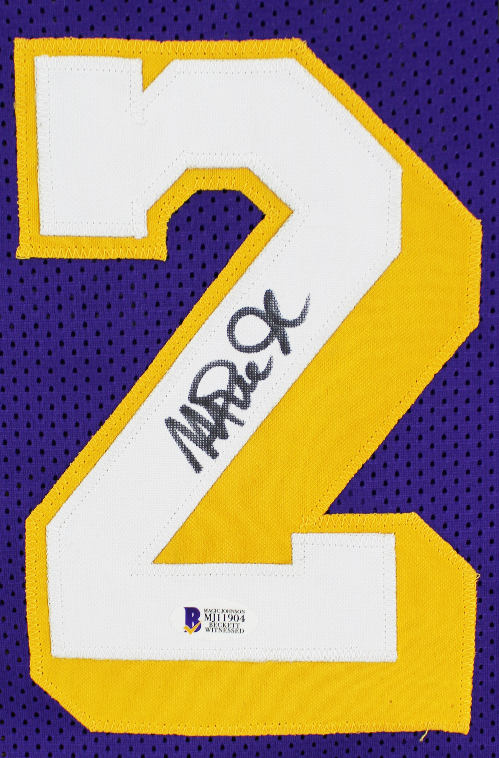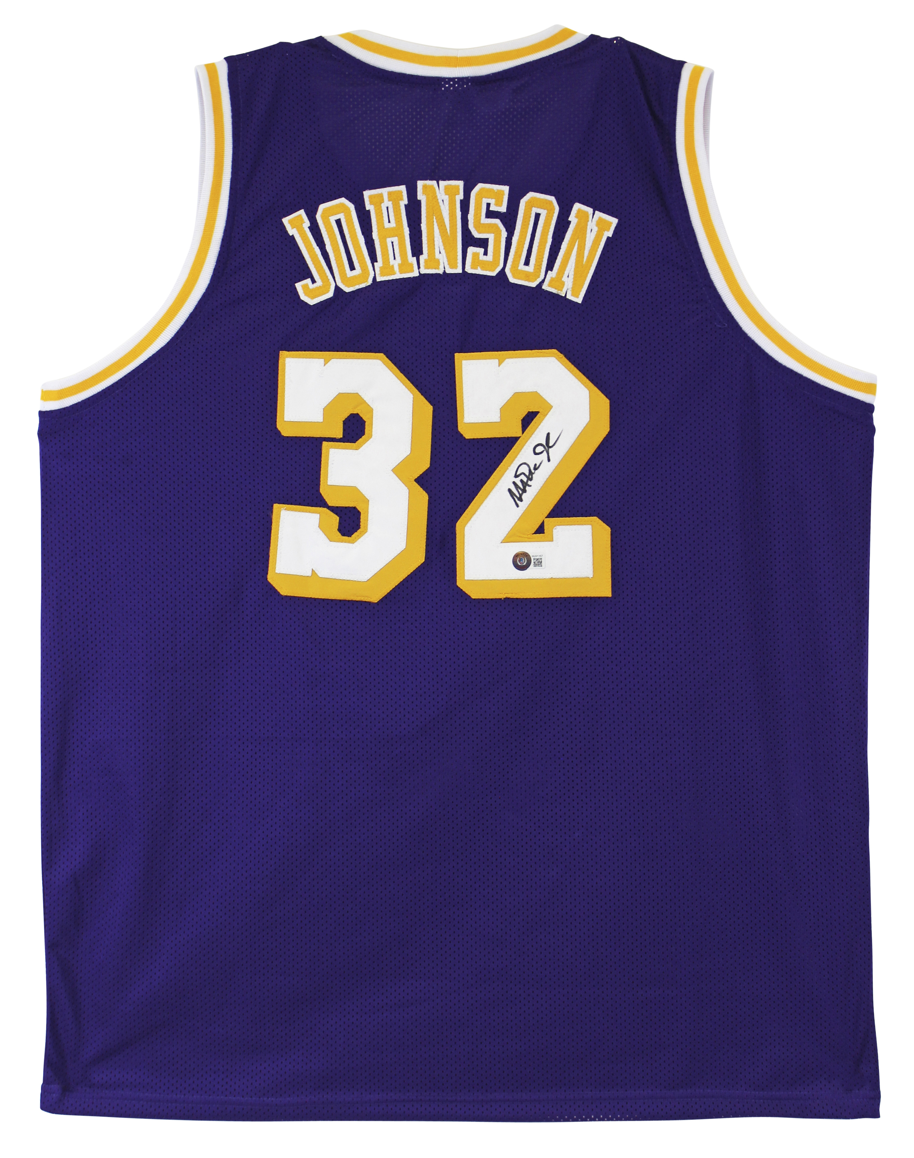 This Autographed Purple Jersey has been Personally Signed by Magic Johnson of the Los Angeles Lakers. This item is 100% Authentic to include a hologram by Beckett Authentication Services. This item may come with the new Beckett Authentication hologram that has a scannable QR code rather than the traditional COA. If you would like to have a COA, you are welcome to reach out to Beckett for a printed certification once you receive your item. This is a BAS Witnessed Protection Program item which means a Beckett Authentication Service representative was present when this item was being signed. This is a stock item. We conducted an autograph signing with Magic Johnson and we have several of these available. The one you will receive will be of equal quality to the one pictured. This item can be verified through BAS Witnessed. This is a X-Large sized, non-branded, custom-stitched Jersey.
