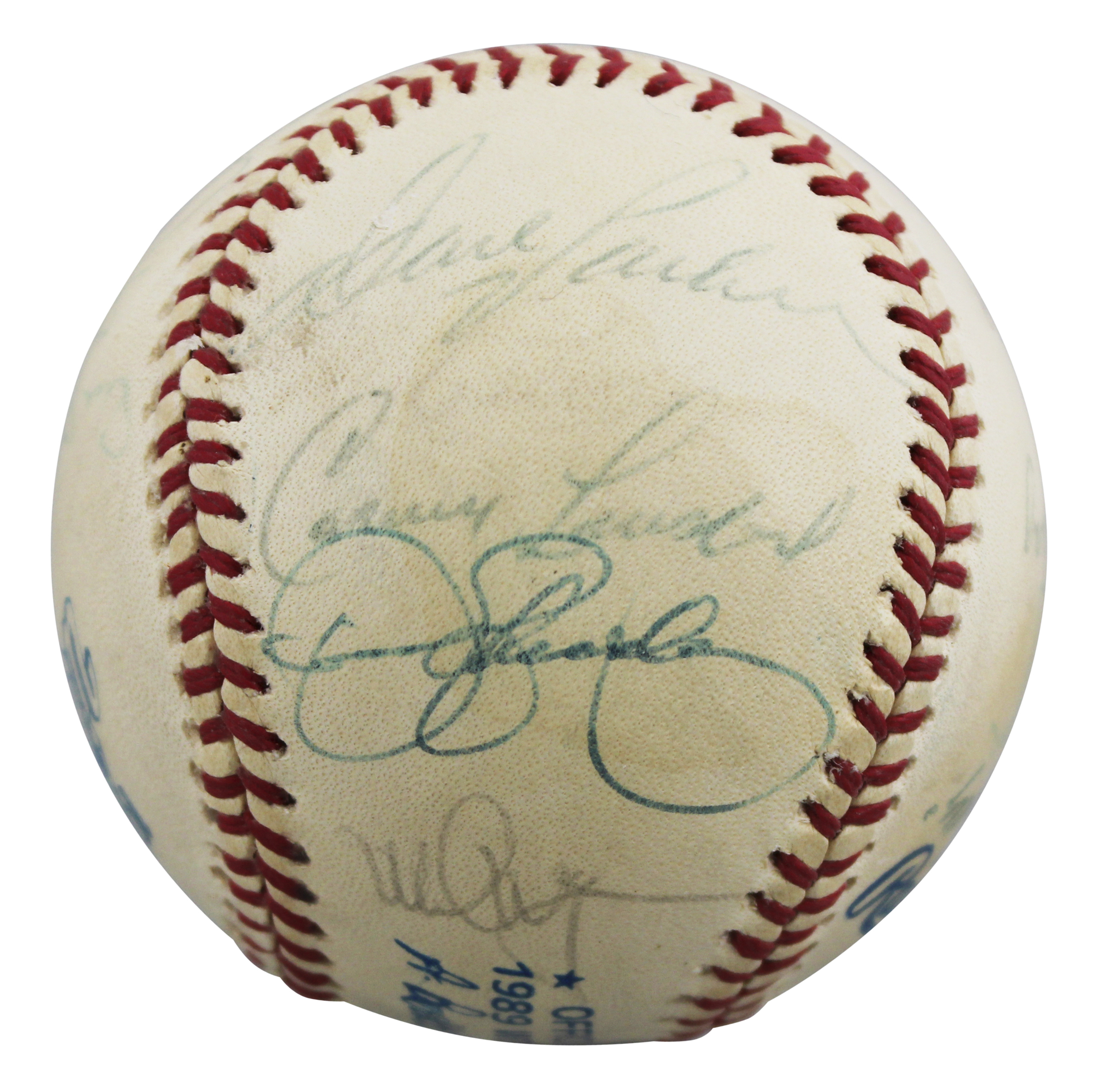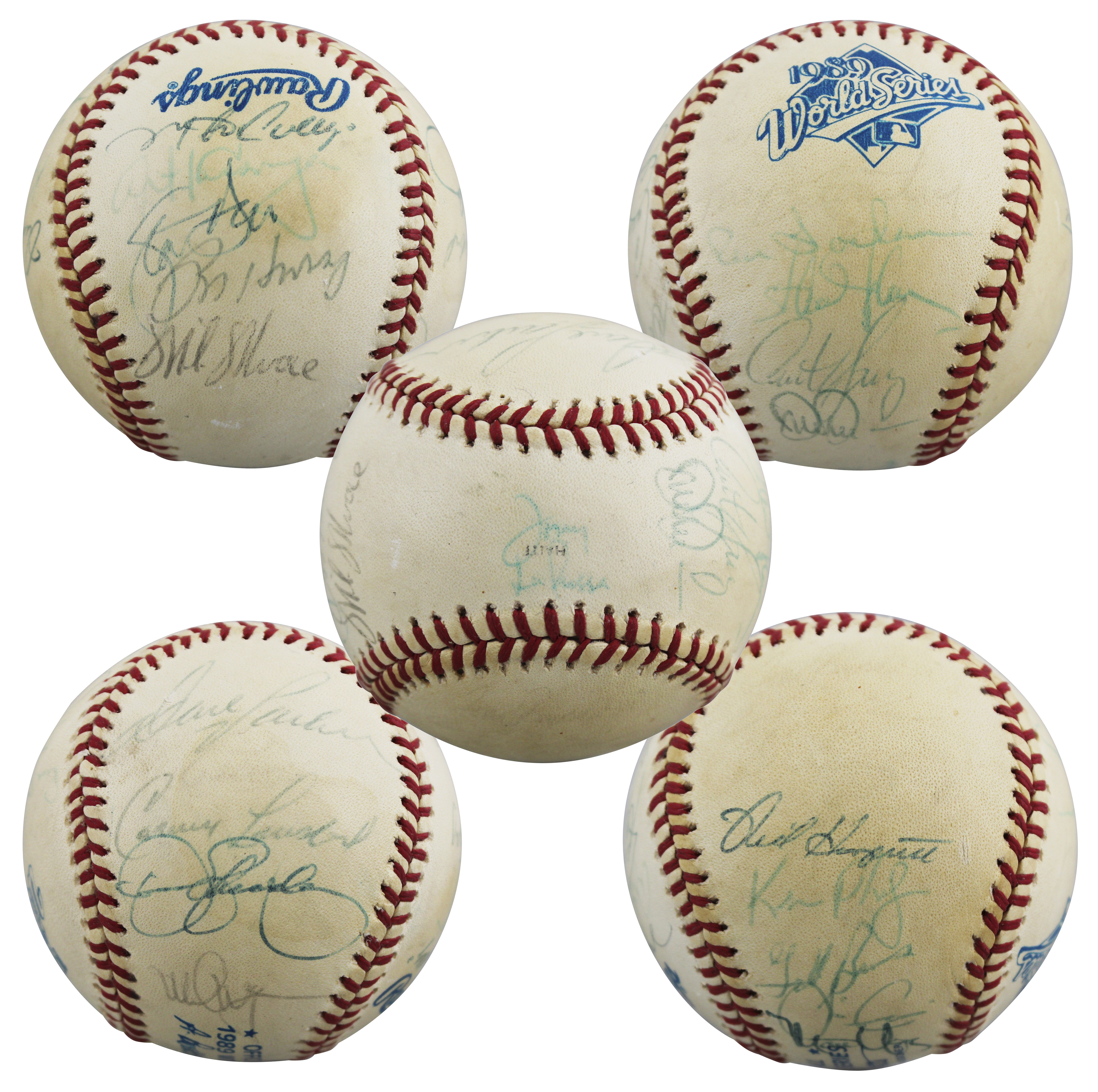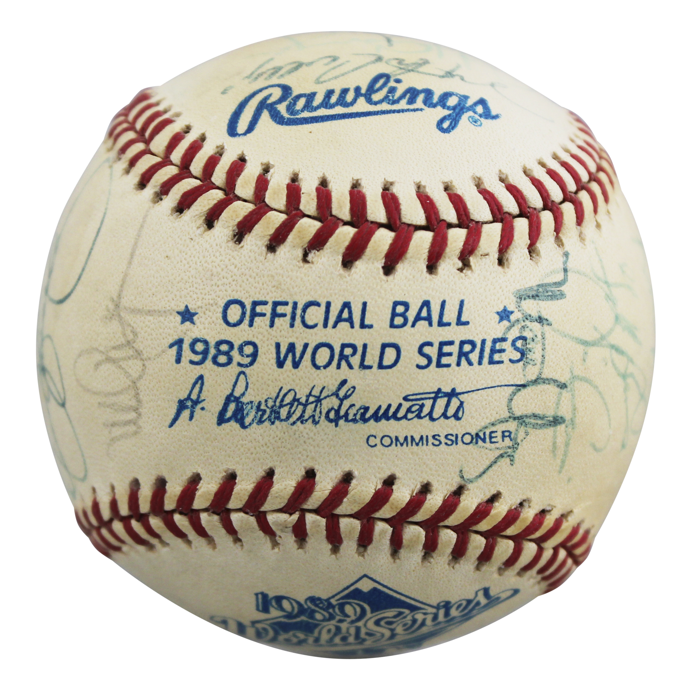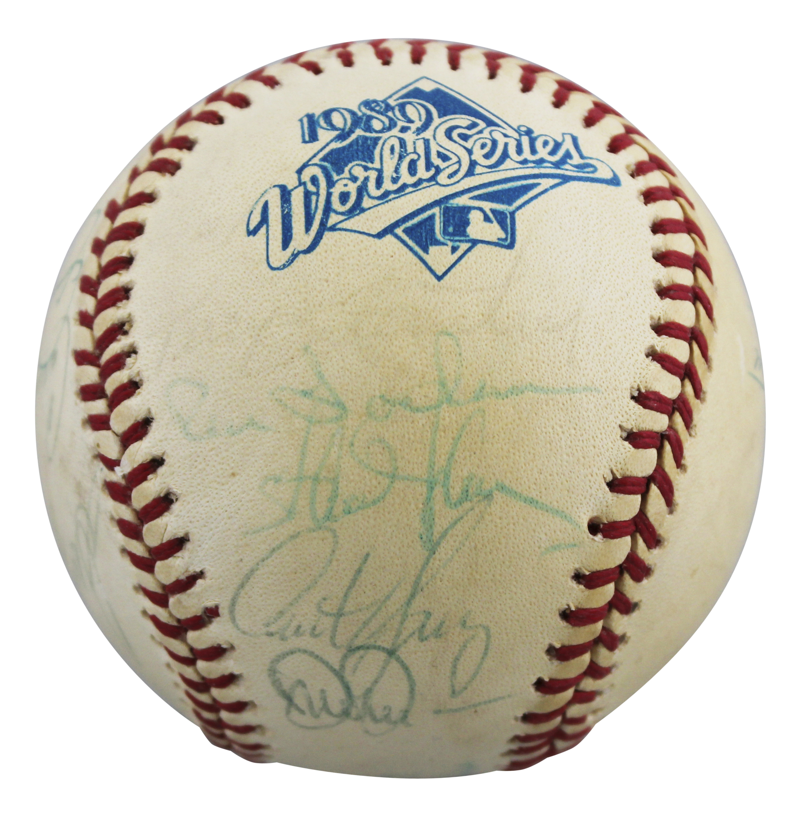 This Autographed 1989 World Series Baseball has been Personally Signed by Tony LaRussa, Dave Parker, Dennis Eckersley, Mark McGwire, Matt Young, Jim Corsi, Ken Phelps, Rick Honeycutt, Carney, Lansford, Rene Lacheman, Stan Javier, Curt Young, Dave Duncan, Mike Moore, Ron Hassey, Art Kusnyer, Make Gallego, Storm Davis, and five others of the Oakland Athletics. This item is 100% Authentic to include a Certificate of Authenticity (COA) / hologram by Beckett Authentication Services. The authenticity can be verified on Beckett Authentication Services website.