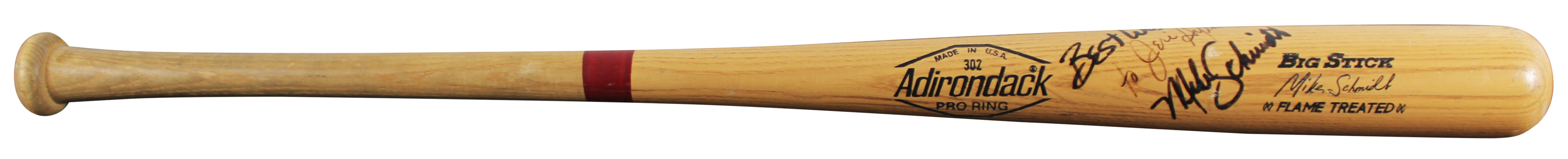 This Autographed Rawlings Big Stick Player Model Baseball Bat with the inscription of "Best Wishes" has been Personally Signed by Mike Schmidt of the Philladelphia Phillies. This item is 100% Authentic to include a hologram by Beckett Authentication Services. This item will come with an affixed Beckett Authentication Services (BAS) authentication sticker, which includes a scannable QR code to verify authenticity. Please note that Beckett no longer provides serial-numbered COA cards, and the attached BAS sticker will serve as the complete authentication for this item. The authenticity can be verified on Beckett Authentication Services website. The personalization on this bat was written in an unknown hand.
