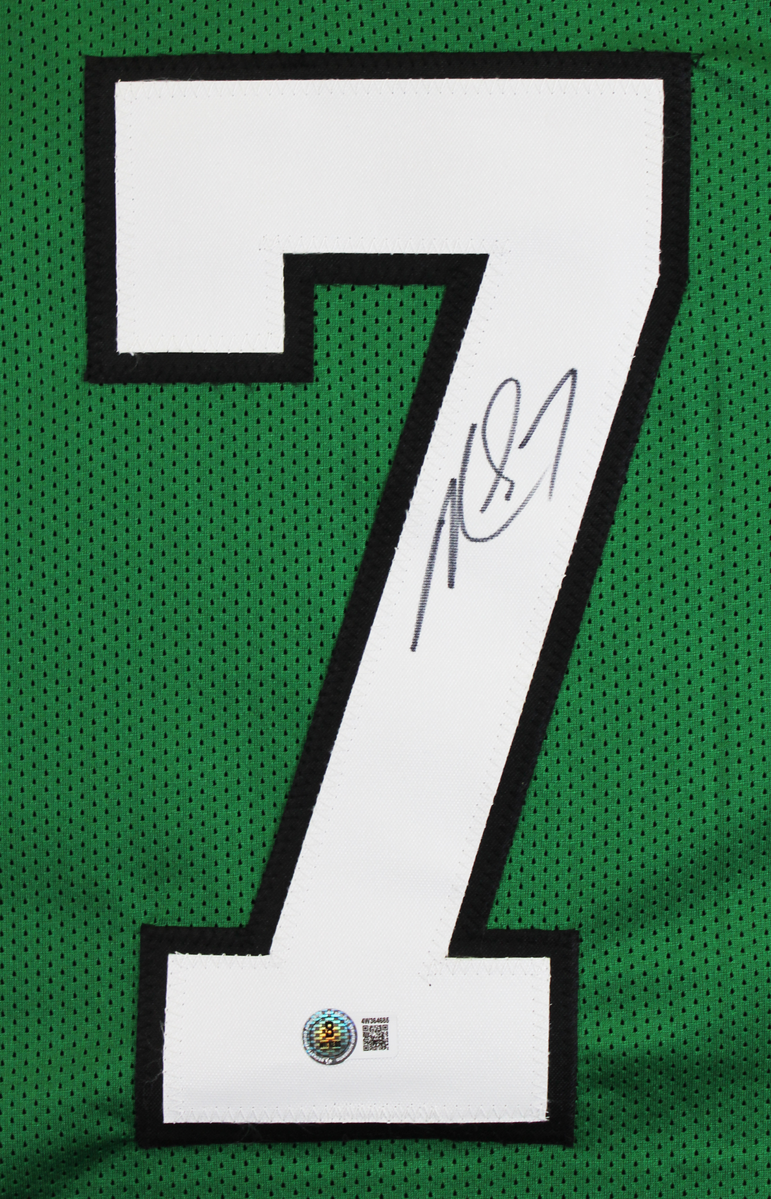 This Autographed Green Throwback Pro Style Jersey has been Personally Signed by Michael Vick of the Philadelphia Eagles. This item is 100% Authentic to include a hologram by Beckett Authentication Services. This item will come with an affixed Beckett Authentication Services (BAS) authentication sticker, which includes a scannable QR code to verify authenticity. Please note that Beckett no longer provides serial-numbered COA cards, and the attached BAS sticker will serve as the complete authentication for this item. This is a BAS Witnessed Protection Program item which means a Beckett Authentication Service representative was present when this item was being signed. We conducted an autograph signing with Michael Vick where multiples of the same item were signed. While the photographs are representative of this item, the size, placement and strength of the signature may vary. Each item is hand signed, therefore, each autograph is unique. This item can be verified through BAS Witnessed. This is a X-Large sized, non-branded, custom-stitched Jersey.