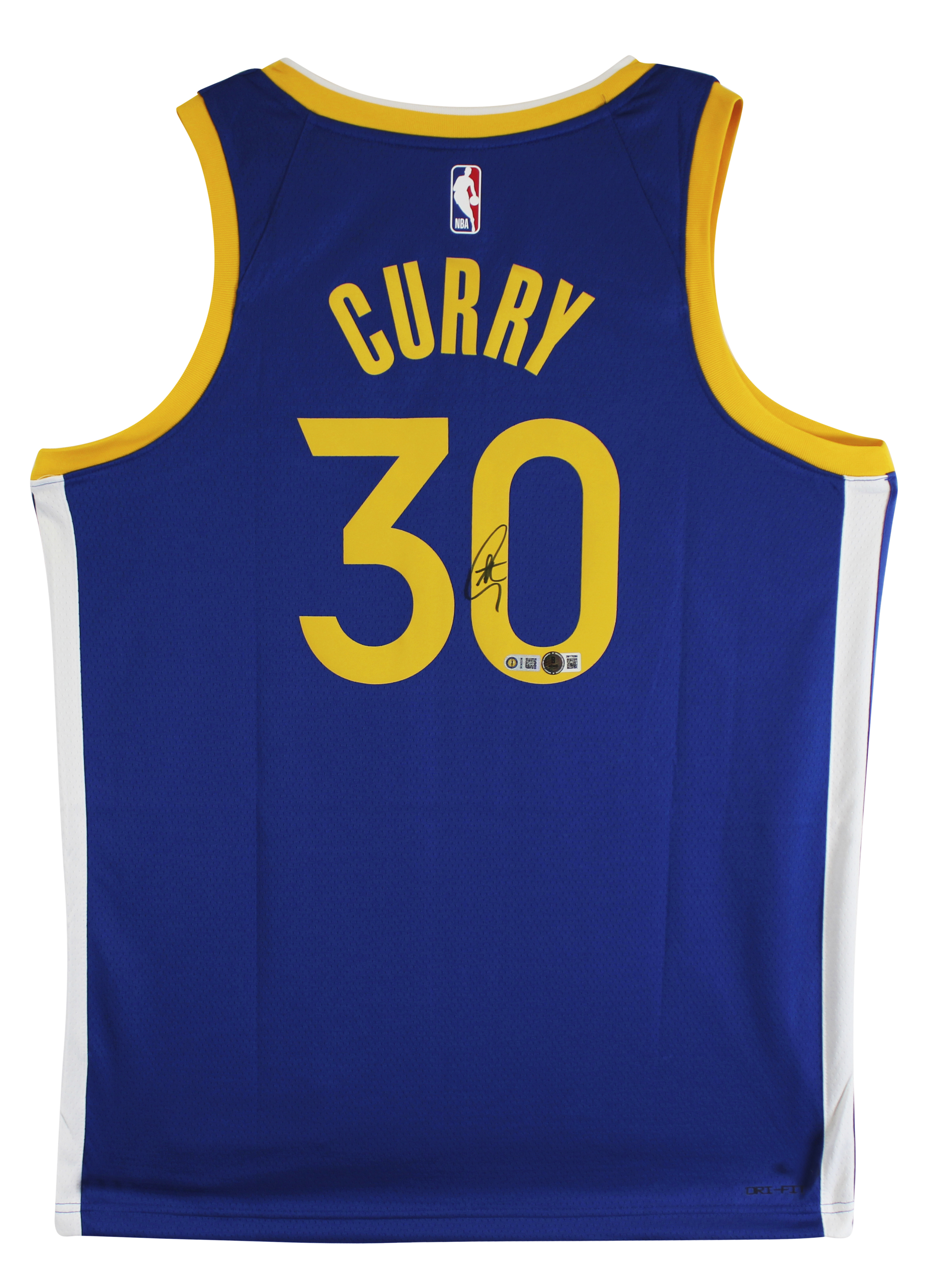 This Autographed Blue Nike Icon Edition Swingman Jersey has been Personally Signed by Stephen Curry of the Golden State Warriors. This item is 100% Authentic to include a hologram by Beckett Authentication Services. This item will come with an affixed Beckett Authentication Services (BAS) authentication sticker, which includes a scannable QR code to verify authenticity. Please note that Beckett no longer provides serial-numbered COA cards, and the attached BAS sticker will serve as the complete authentication for this item. We have multiples of this same item. While the photographs are representative of this item, the size, placement and strength of the signature may vary. Each item is hand signed, therefore, each autograph is unique. Multiple sizes available. Reach out for availability.