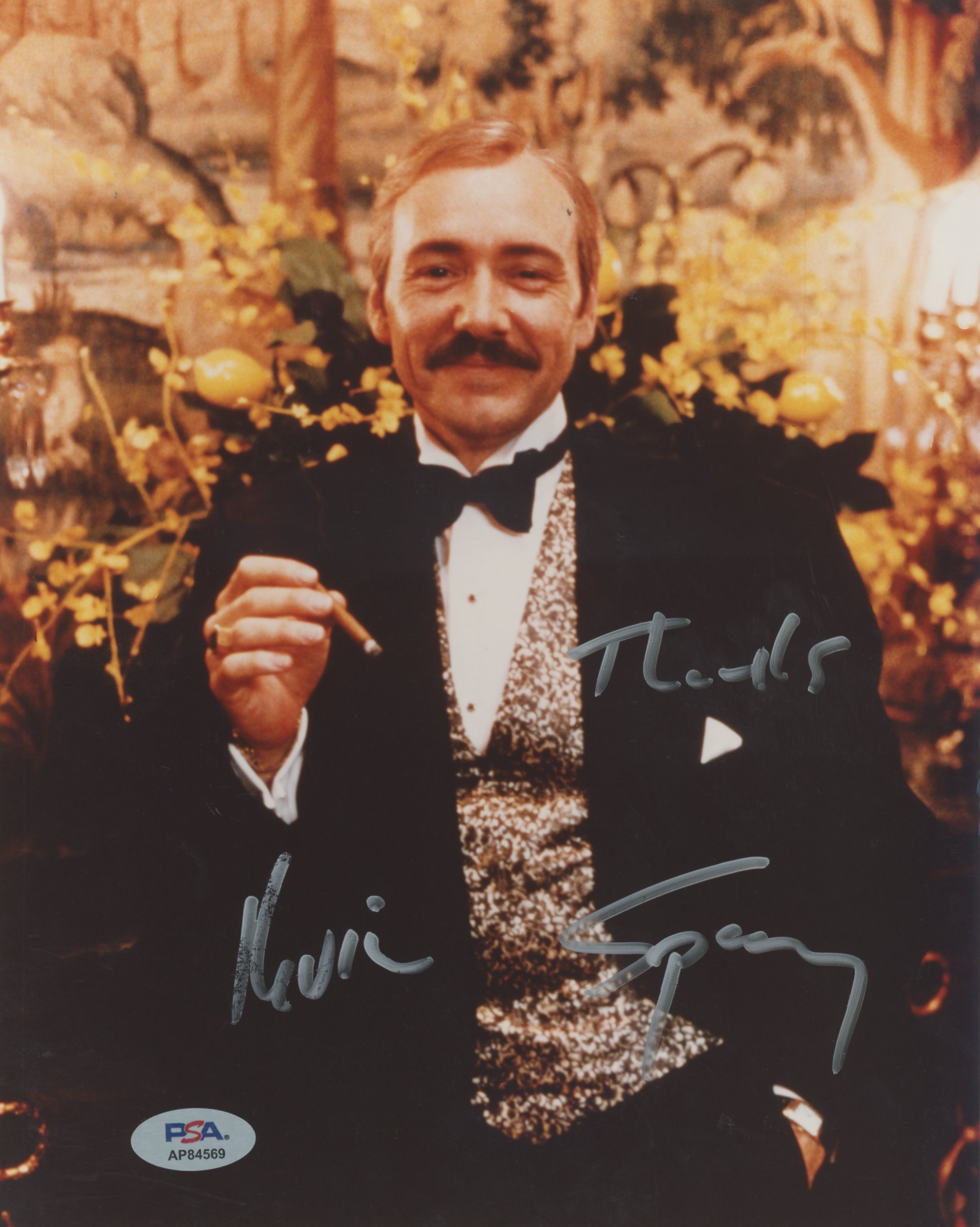 This Autographed Vertical 8x10 Photo with the inscription of "Thanks" has been Personally Signed by Kevin Spacey of Midnight in the Garden of Good and Evil. This item is 100% Authentic and comes with a PSA/DNA Certification numbered Hologram. Please note that PSA/DNA no longer provides serial-numbered COA cards, and the attached PSA/DNA sticker will serve as the complete authentication for this item. The authenticity can be verified on Professional Sports Authenticators website.