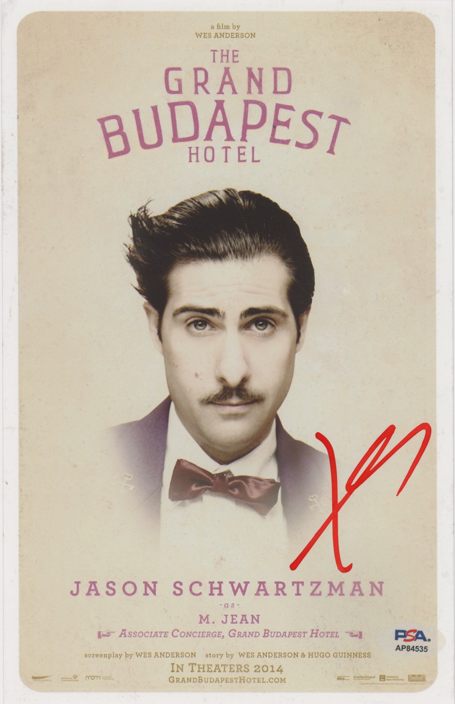 This Autographed Vertical 8x10 Photo has been Personally Signed by Jason Schwartzman of The Grand Budapest Hotel. This item is 100% Authentic and comes with a PSA/DNA Certification numbered Hologram. Please note that PSA/DNA no longer provides serial-numbered COA cards, and the attached PSA/DNA sticker will serve as the complete authentication for this item. The authenticity can be verified on Professional Sports Authenticators website.