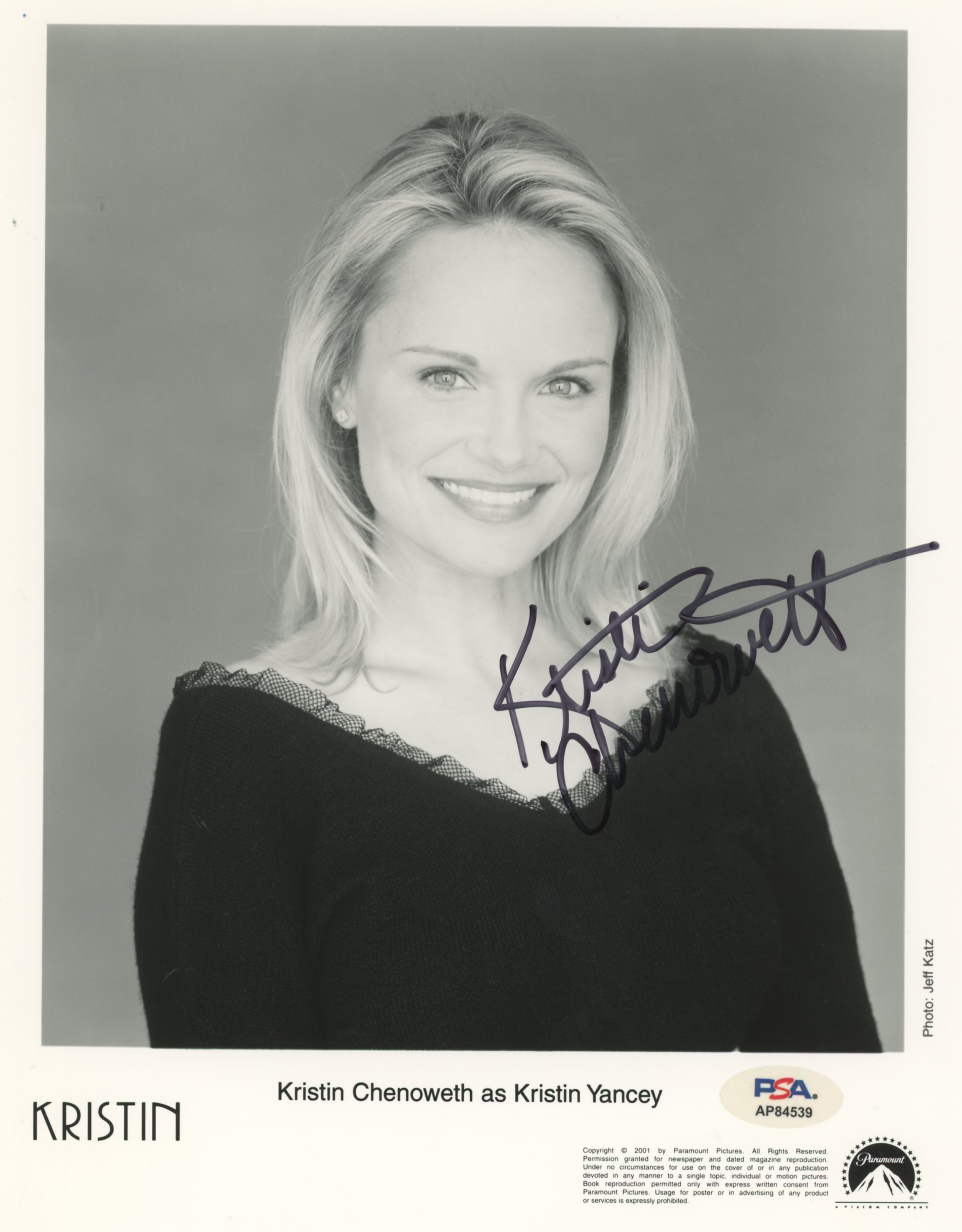 This Autographed Vertical 8x10 Photo has been Personally Signed by Kristin Chenoweth of Pushing Daisies. This item is 100% Authentic and comes with a PSA/DNA Certification numbered Hologram. Please note that PSA/DNA no longer provides serial-numbered COA cards, and the attached PSA/DNA sticker will serve as the complete authentication for this item. The authenticity can be verified on Professional Sports Authenticators website.