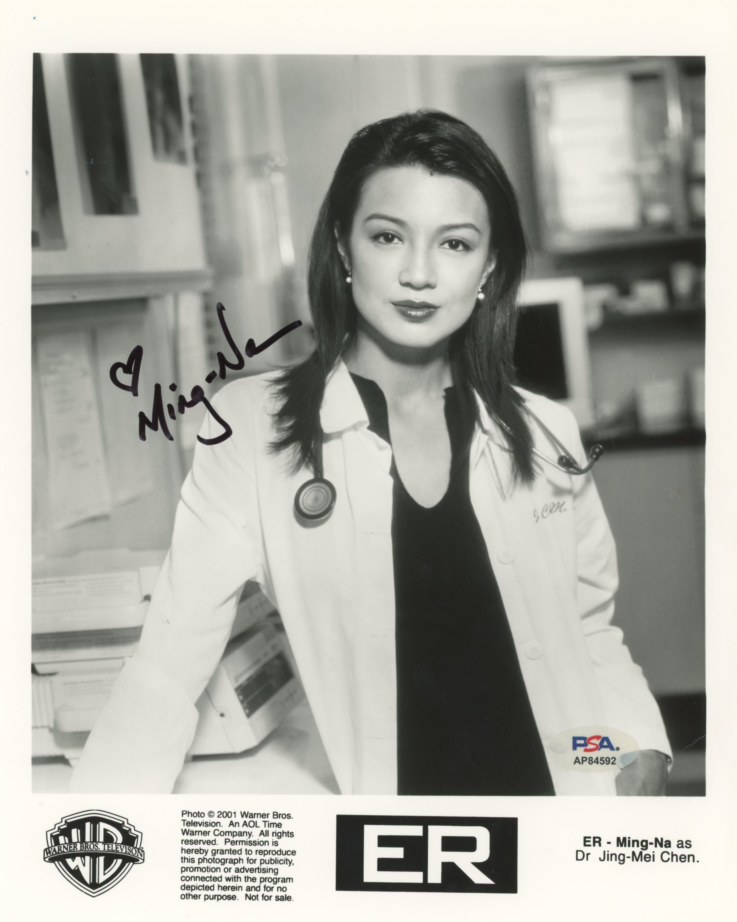 This Autographed Vertical 8x10 Photo has been Personally Signed by Ming-Na of E.R.. This item is 100% Authentic and comes with a PSA/DNA Certification numbered Hologram. Please note that PSA/DNA no longer provides serial-numbered COA cards, and the attached PSA/DNA sticker will serve as the complete authentication for this item. The authenticity can be verified on Professional Sports Authenticators website.