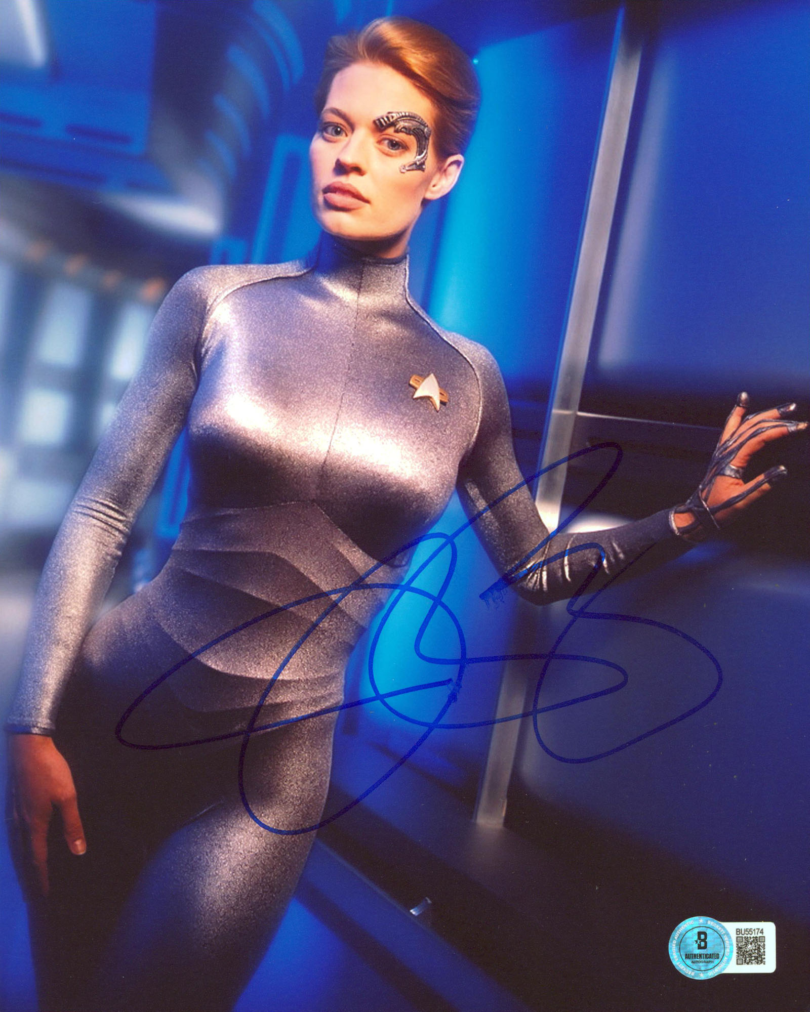 This Autographed Vertical 8x10 Photo has been Personally Signed by Jeri Ryan of Star Trek: Voyager. This item is 100% Authentic to include a hologram by Beckett Authentication Services. This item will come with an affixed Beckett Authentication Services (BAS) authentication sticker, which includes a scannable QR code to verify authenticity. Please note that Beckett no longer provides serial-numbered COA cards, and the attached BAS sticker will serve as the complete authentication for this item. The authenticity can be verified on Beckett Authentication Services website.