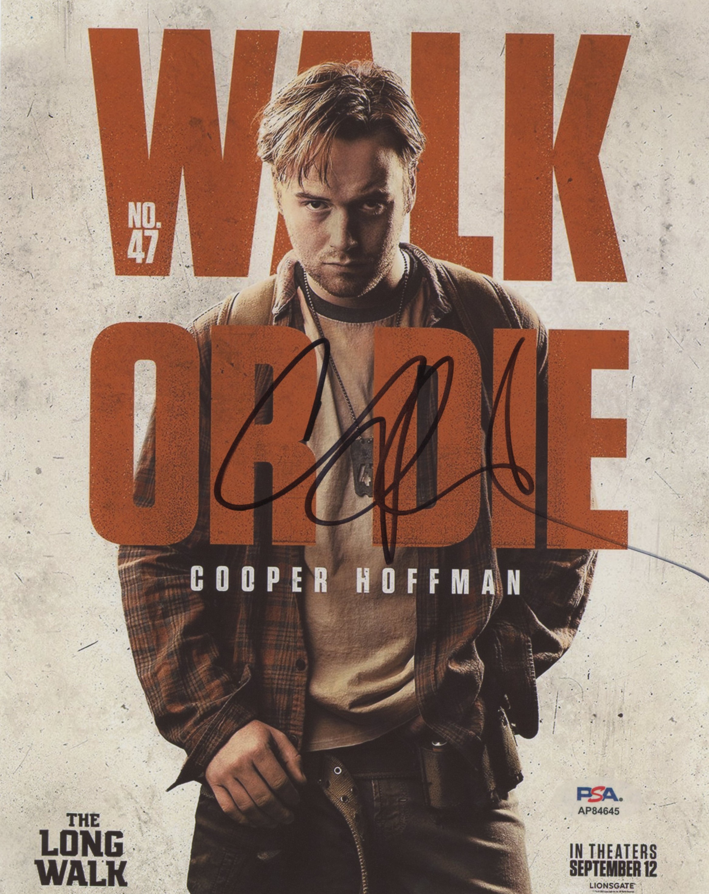 This Autographed Vertical 8x10 Photo has been Personally Signed by Cooper Hoffman of The Long Walk. This item is 100% Authentic and comes with a PSA/DNA Certification numbered Hologram. Please note that PSA/DNA no longer provides serial-numbered COA cards, and the attached PSA/DNA sticker will serve as the complete authentication for this item. The authenticity can be verified on Professional Sports Authenticators website.