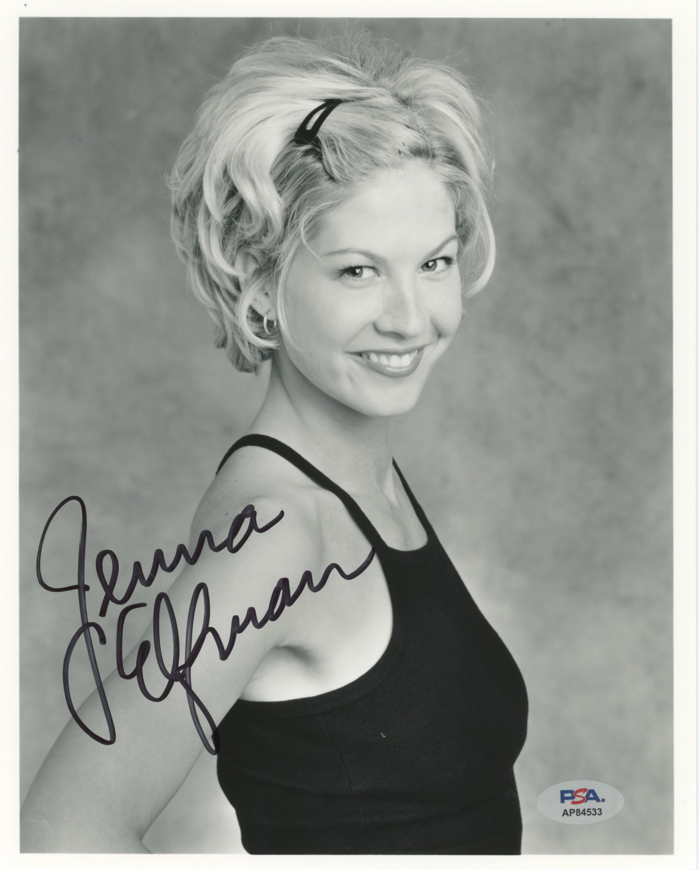This Autographed Vertical 8x10 Photo has been Personally Signed by Jenna Elfman of Dharma & Greg. This item is 100% Authentic and comes with a PSA/DNA Certification numbered Hologram. Please note that PSA/DNA no longer provides serial-numbered COA cards, and the attached PSA/DNA sticker will serve as the complete authentication for this item. The authenticity can be verified on Professional Sports Authenticators website.