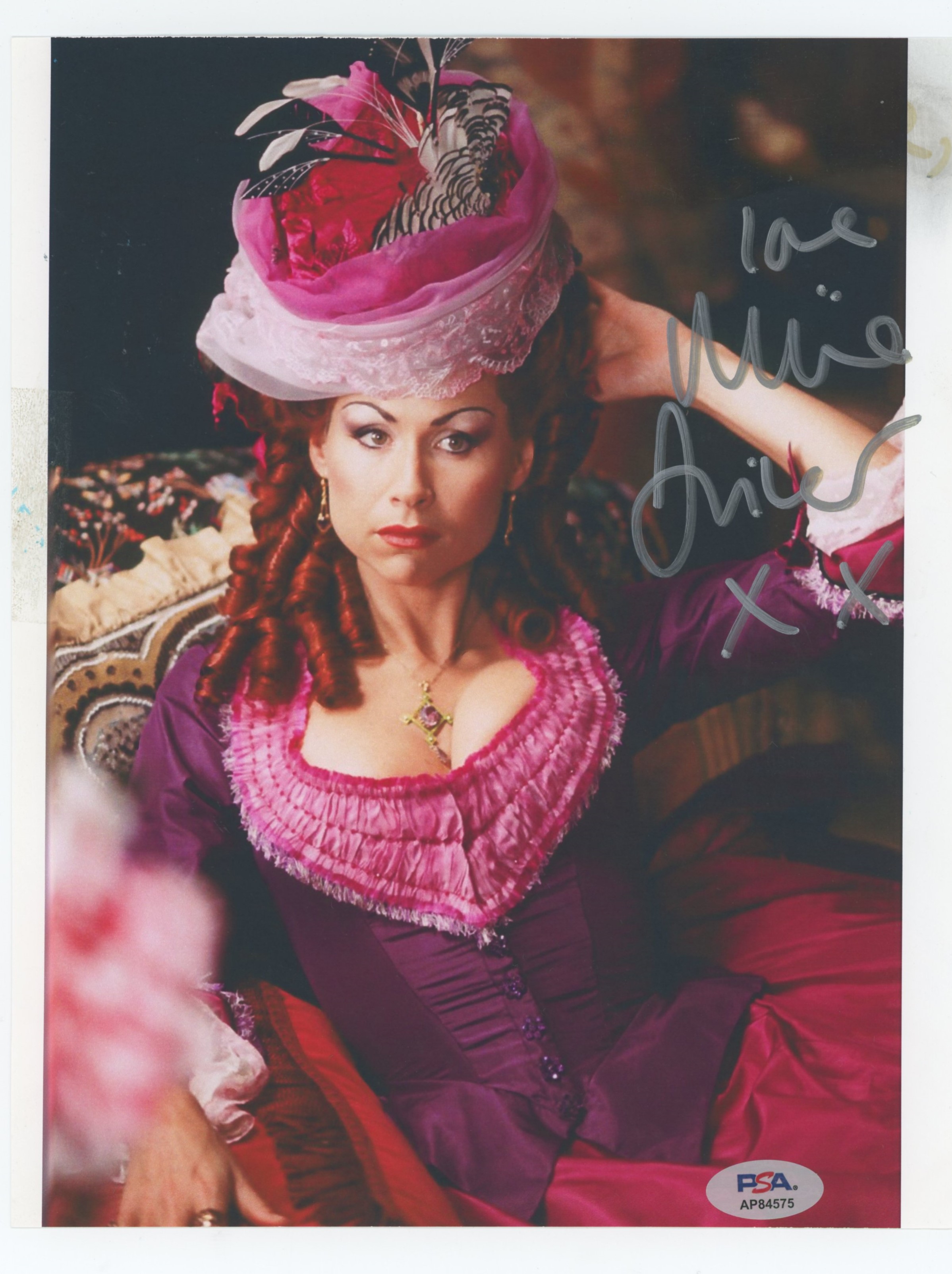 This Autographed Vertical 8x10 Photo with the inscription of "Love" has been Personally Signed by Minnie Driver of The Phantom of the Opera. This item is 100% Authentic and comes with a PSA/DNA Certification numbered Hologram. Please note that PSA/DNA no longer provides serial-numbered COA cards, and the attached PSA/DNA sticker will serve as the complete authentication for this item. The authenticity can be verified on Professional Sports Authenticators website.