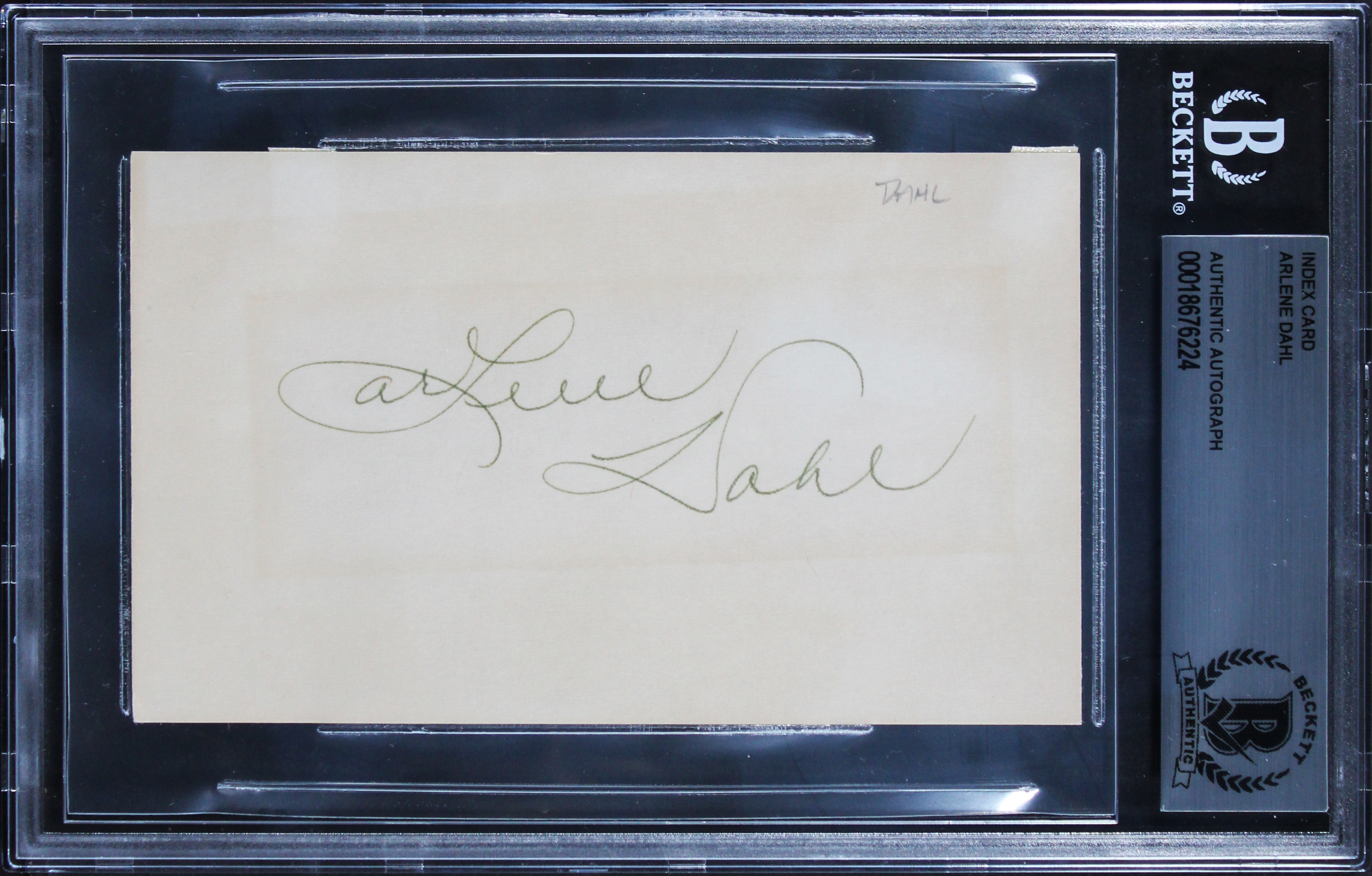 This Autographed 3x5 Index Card has been Personally Signed by Arlene Dahl of Wicked as They Come. This item is 100% Authentic, it comes slabbed and authenticated by Beckett Authentication Services. The authenticity can be verified on Beckett Authentication Services website.