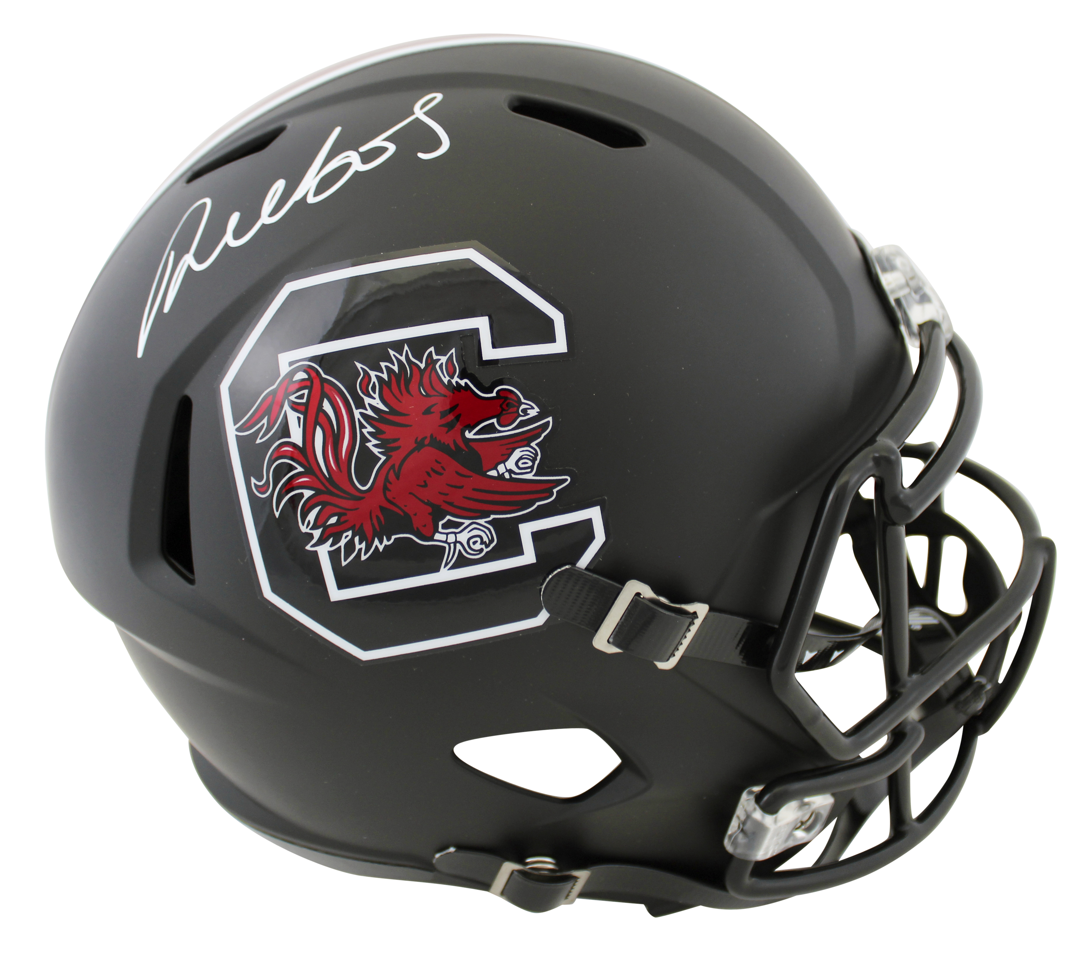 This Autographed Black Full Size Speed Rep Helmet W/ Uv Mirrored Back Acrylic Display Case has been Personally Signed by Deebo Samuel of the South Carolina Gamecocks. This item is 100% Authentic to include a Certificate of Authenticity (COA) / hologram by JSA. We conducted an autograph signing with Deebo Samuel where multiples of the same item were signed. While the photographs are representative of this item, the size, placement and strength of the signature may vary. Each item is hand signed, therefore, each autograph is unique. This item can be verified through JSA.