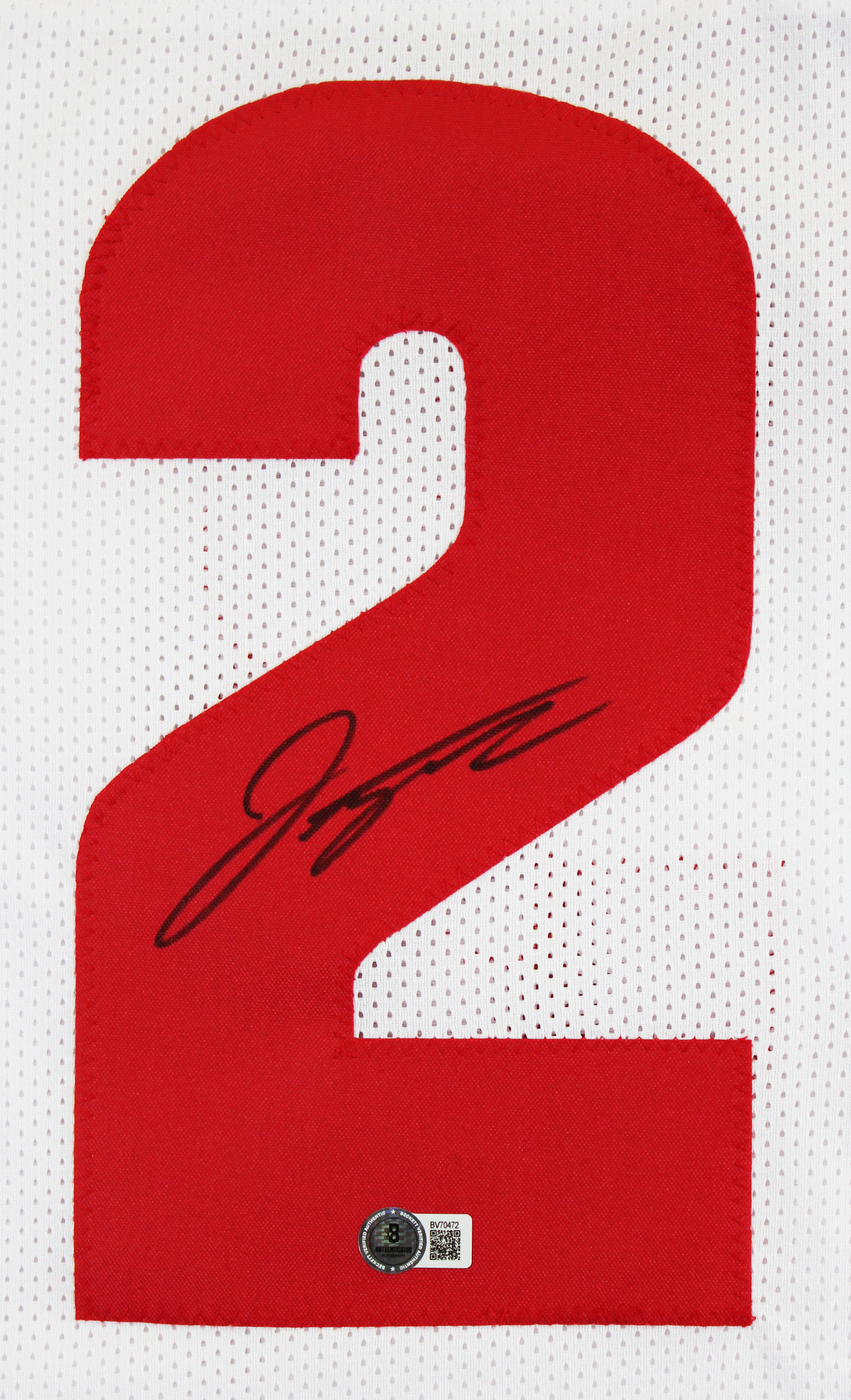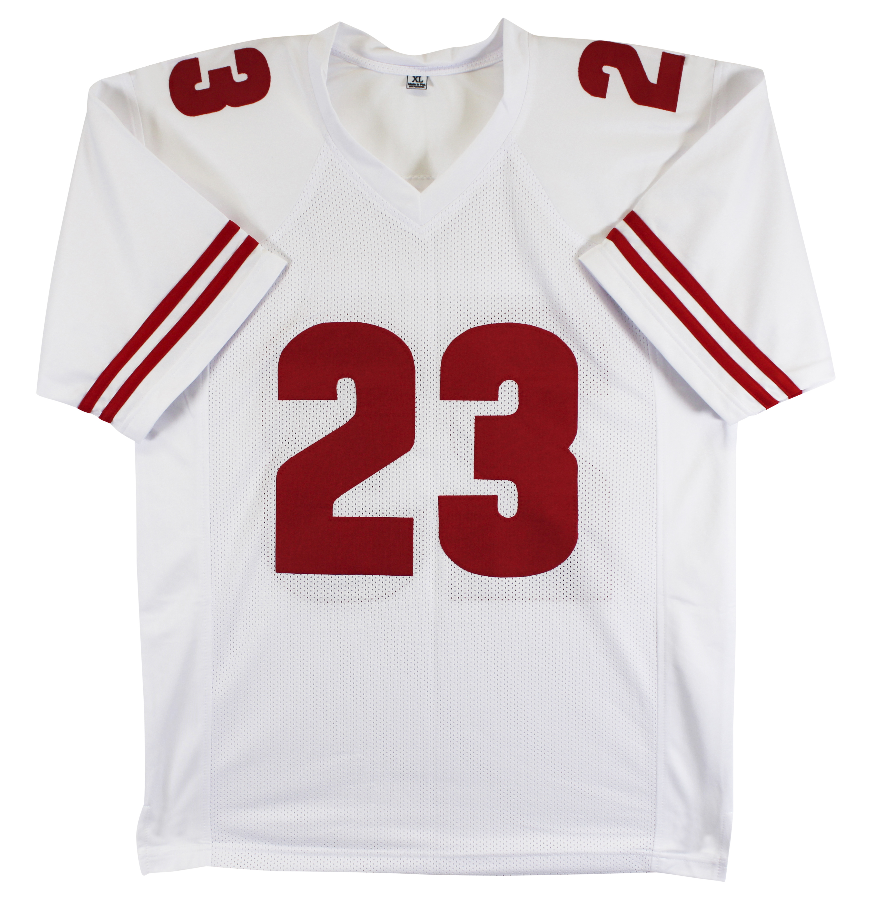 This Autographed White Pro Style Jersey has been Personally Signed by Jonathan Taylor of the Wisconsin Badgers. This item is 100% Authentic to include a hologram by Beckett Authentication Services. This item will come with an affixed Beckett Authentication Services (BAS) authentication sticker, which includes a scannable QR code to verify authenticity. Please note that Beckett no longer provides serial-numbered COA cards, and the attached BAS sticker will serve as the complete authentication for this item. We conducted an autograph signing with Jonathan Taylor where multiples of the same item were signed. While the photographs are representative of this item, the size, placement and strength of the signature may vary. Each item is hand signed, therefore, each autograph is unique. This item can be verified through BAS. This is a X-Large sized, non-branded, custom-stitched Jersey.