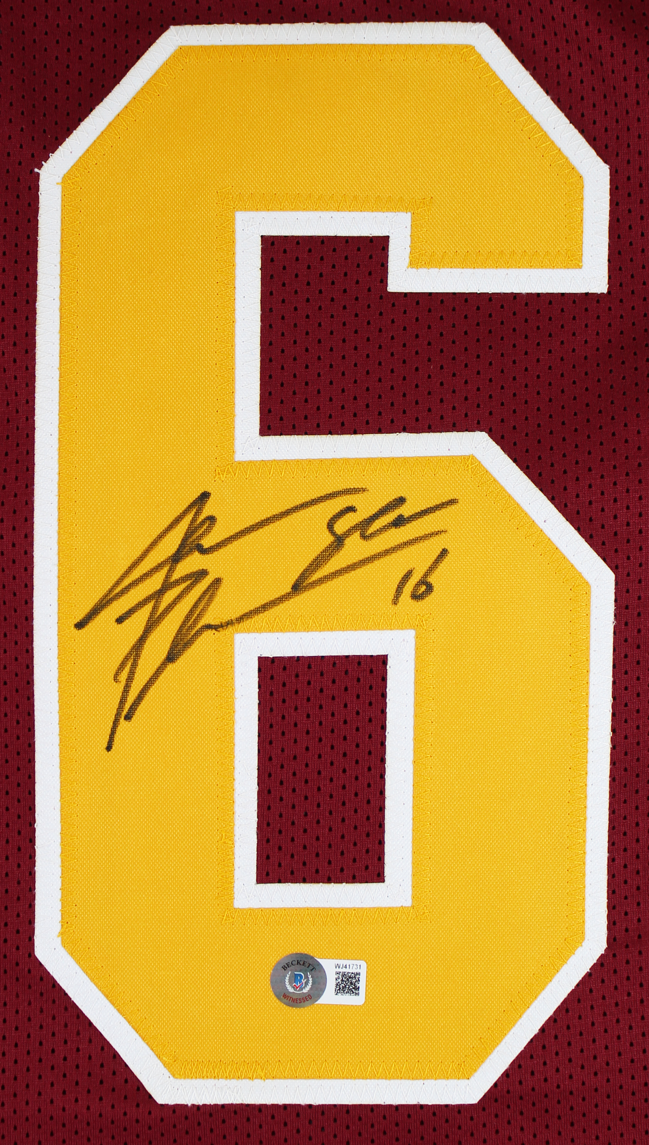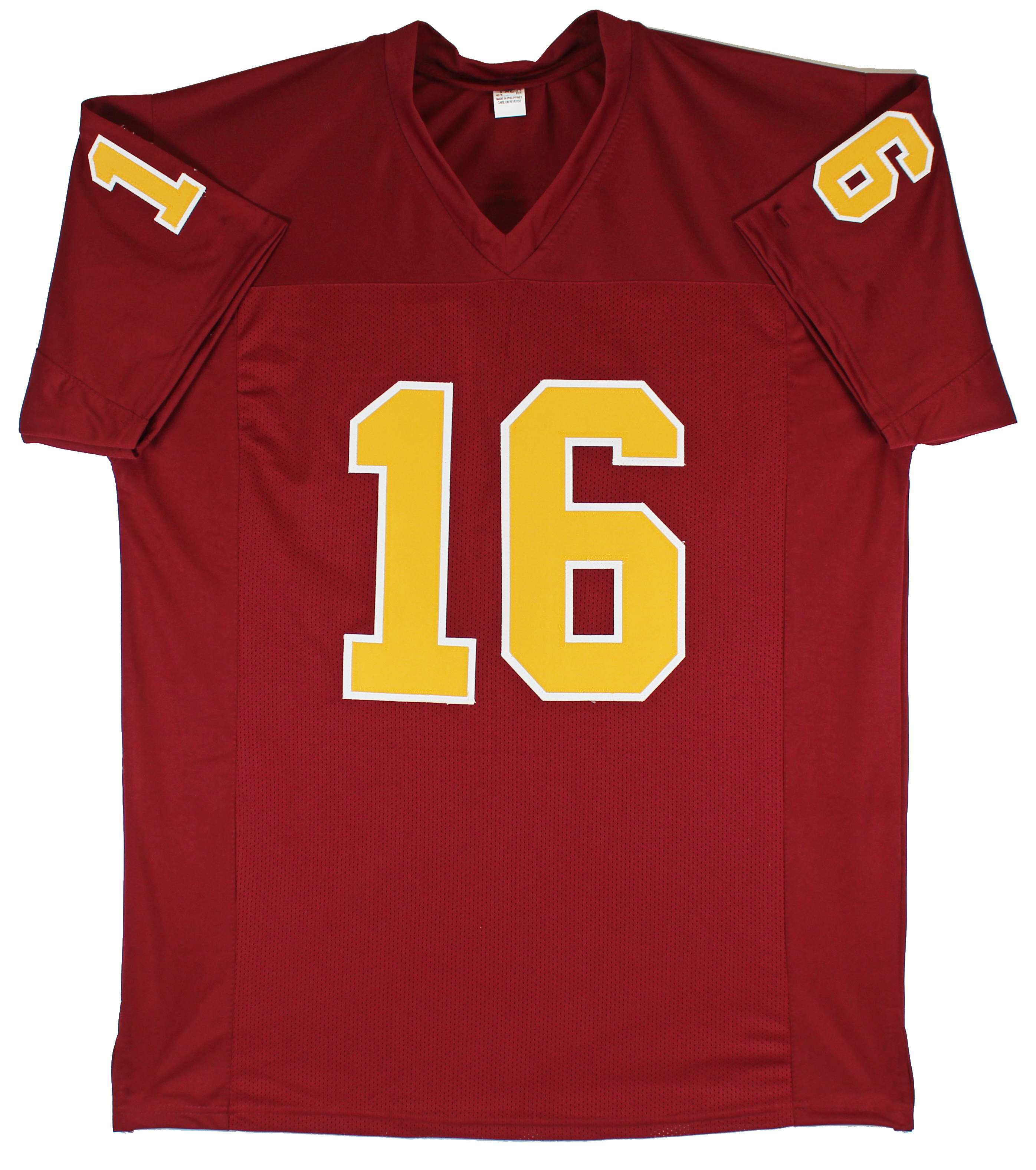 This Autographed Maroon Pro Style Jersey has been Personally Signed by Jake Plummer of the Arizona State Sun Devils. This item is 100% Authentic to include a hologram by Beckett Authentication Services. This item will come with the new Beckett Authentication hologram that has a scannable QR code rather than the traditional COA. If you would like to have a COA, you are welcome to reach out to Beckett for a printed certification once you receive your item. This is a BAS Witnessed Protection Program item which means a Beckett Authentication Service representative was present when this item was being signed. This is a stock item. We conducted an autograph signing with Jake Plummer and we have several of these available. The one you will receive will be of equal quality to the one pictured. This item can be verified through BAS Witnessed. This is a X-Large sized, non-branded, custom-stitched Jersey.