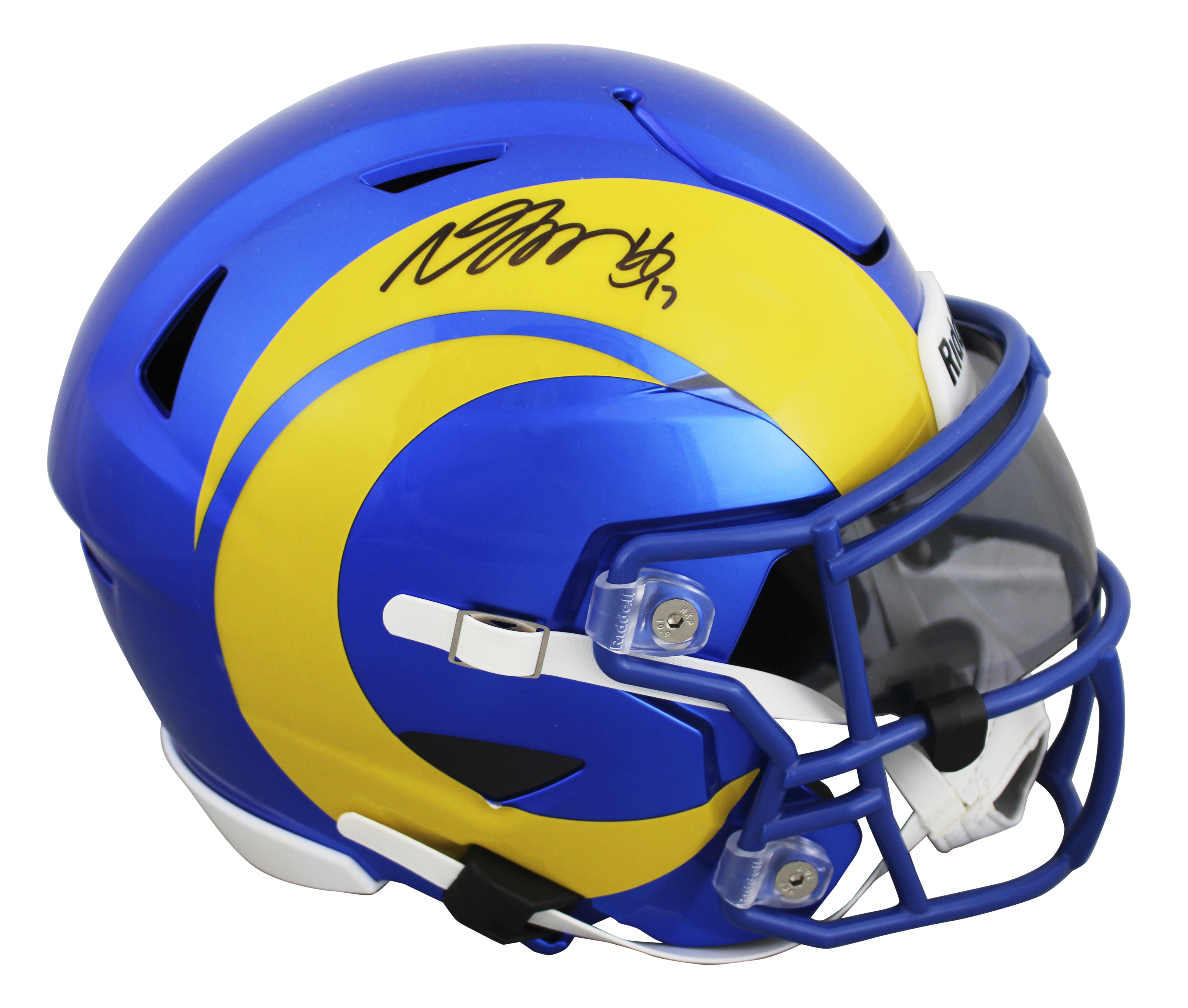 This Autographed Flex Midi Replica Mid Size Helmet has been Personally Signed by Davante Adams of the Los Angeles Rams. This item is 100% Authentic to include a hologram by Beckett Authentication Services. This item will come with an affixed Beckett Authentication Services (BAS) authentication sticker, which includes a scannable QR code to verify authenticity. Please note that Beckett no longer provides serial-numbered COA cards, and the attached BAS sticker will serve as the complete authentication for this item. We conducted an autograph signing with Davante Adams where multiples of the same item were signed. While the photographs are representative of this item, the size, placement and strength of the signature may vary. Each item is hand signed, therefore, each autograph is unique. This item can be verified through BAS.