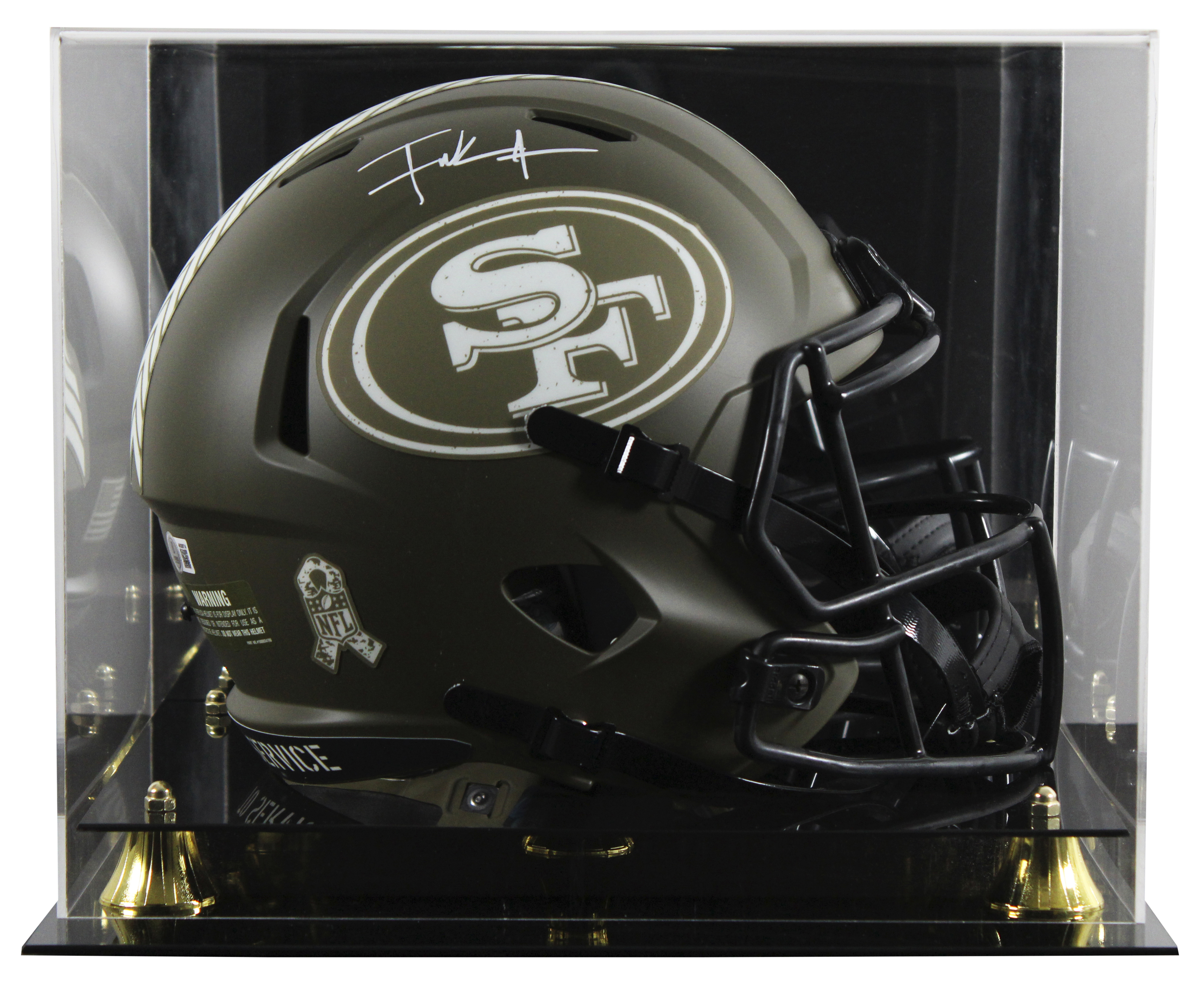 This Autographed Alternate Salute To Service Riddell Full Size Speed Rep Helmet W/ Uv Mirrored Back Acrylic Display Case has been Personally Signed by Frank Gore of the San Francisco 49ers. This item is 100% Authentic to include a hologram by Beckett Authentication Services. This item will come with an affixed Beckett Authentication Services (BAS) authentication sticker, which includes a scannable QR code to verify authenticity. Please note that Beckett no longer provides serial-numbered COA cards, and the attached BAS sticker will serve as the complete authentication for this item. This is a BAS Witnessed Protection Program item which means a Beckett Authentication Service representative was present when this item was being signed. We conducted an autograph signing with Frank Gore where multiples of the same item were signed. While the photographs are representative of this item, the size, placement and strength of the signature may vary. Each item is hand signed, therefore, each autograph is unique. This item can be verified through BAS Witnessed.