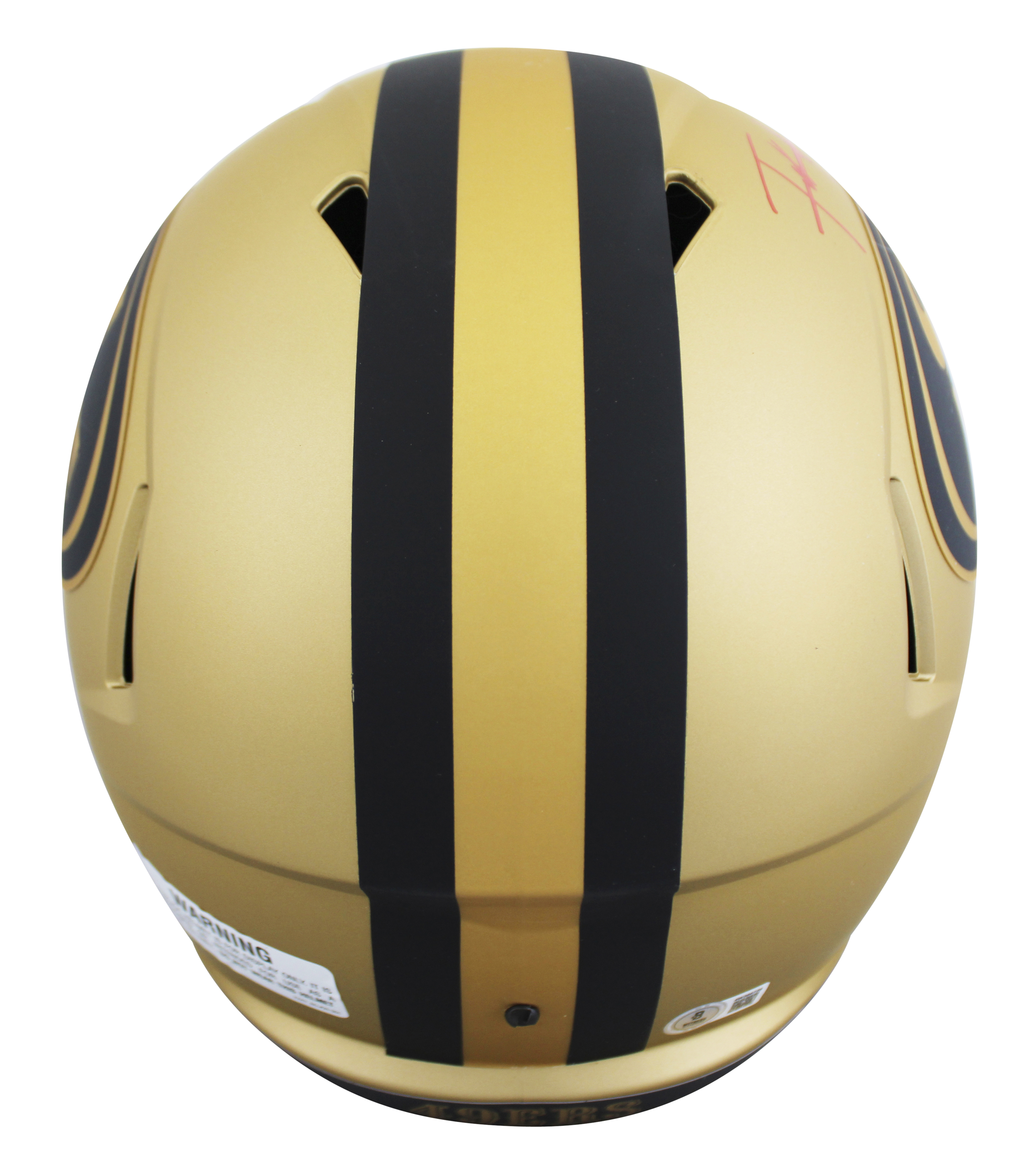 This Autographed Alternate Rave Riddell Full Size Speed Rep Helmet has been Personally Signed by Frank Gore of the San Francisco 49ers. This item is 100% Authentic to include a hologram by Beckett Authentication Services. This item will come with an affixed Beckett Authentication Services (BAS) authentication sticker, which includes a scannable QR code to verify authenticity. Please note that Beckett no longer provides serial-numbered COA cards, and the attached BAS sticker will serve as the complete authentication for this item. This is a BAS Witnessed Protection Program item which means a Beckett Authentication Service representative was present when this item was being signed. We conducted an autograph signing with Frank Gore where multiples of the same item were signed. While the photographs are representative of this item, the size, placement and strength of the signature may vary. Each item is hand signed, therefore, each autograph is unique. This item can be verified through BAS Witnessed.